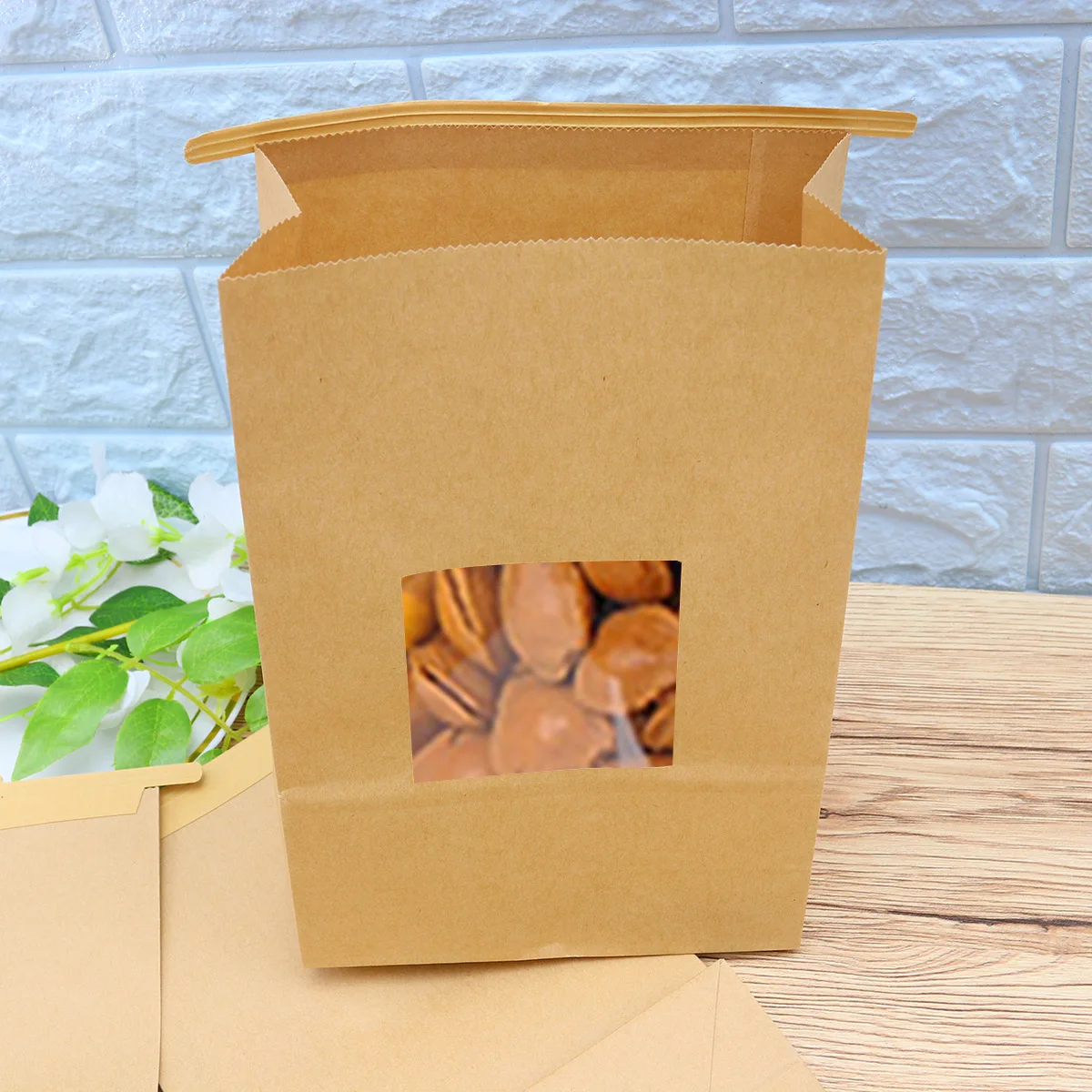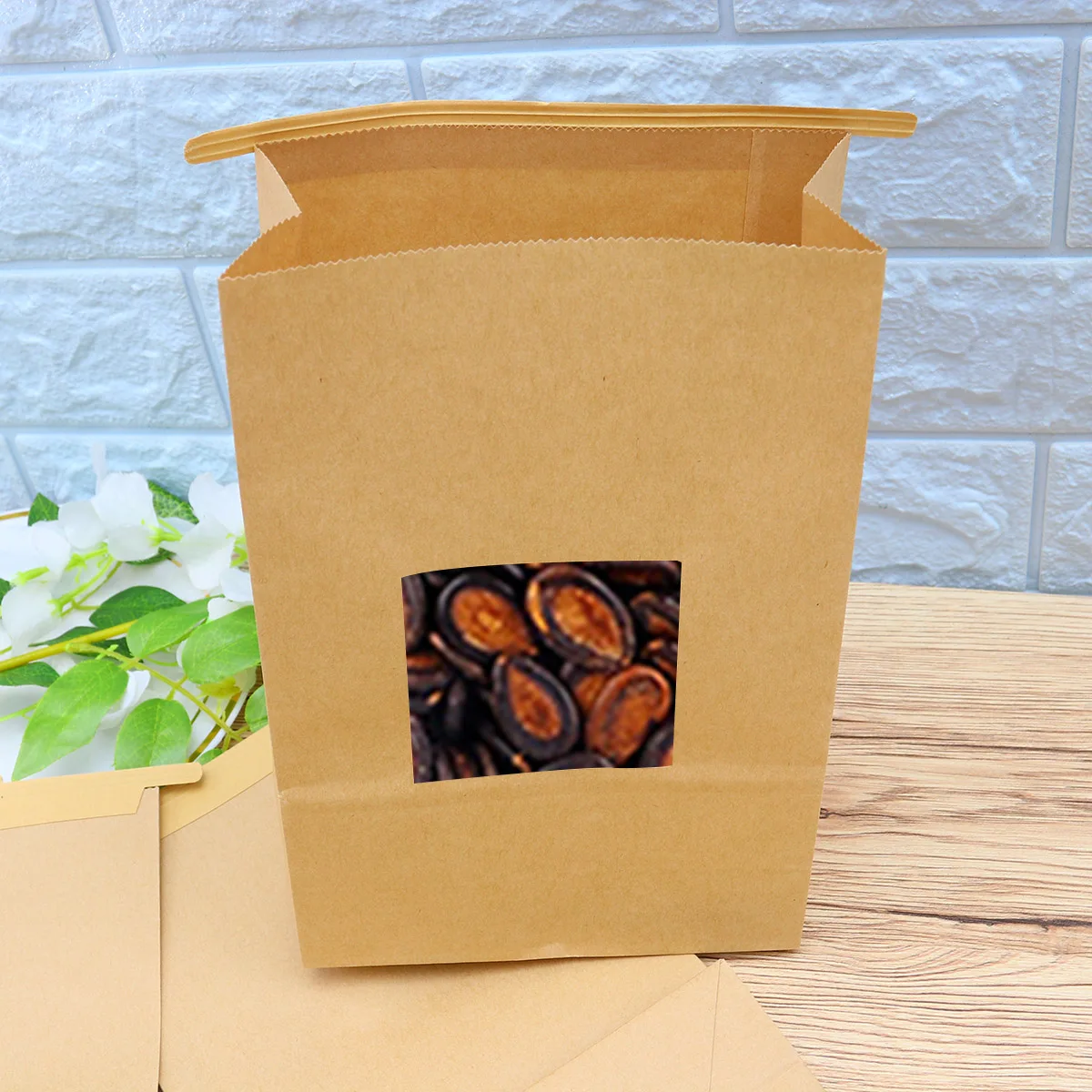 50 шт герметизирующий пакет Прочный практичный крафт-бумага самозапечатывающийся отдельно стоящий пакеты с окном стоячие пакеты герметизирующий пакет для кофейных зерен гайки