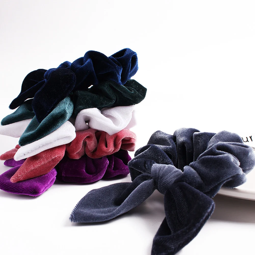 Однотонная бархатная резинка для волос с бантиками и кроличьими ушками, эластичный конский хвост