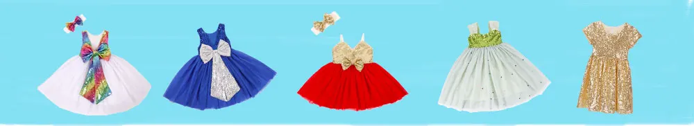 Эти детские платья с блестками будут для Вас отличным выбором разных цветов. Даже с платьем в стиле радужного единорога :)