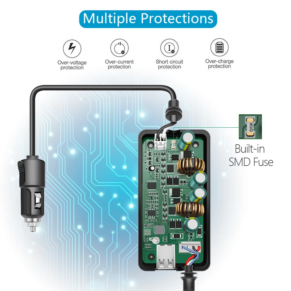 -Интеллектуальная защита зарядного устройства, перенапряжение, Перегрузка по току, перезарядка, перегрев, перезагрузка, защита от короткого замыкания