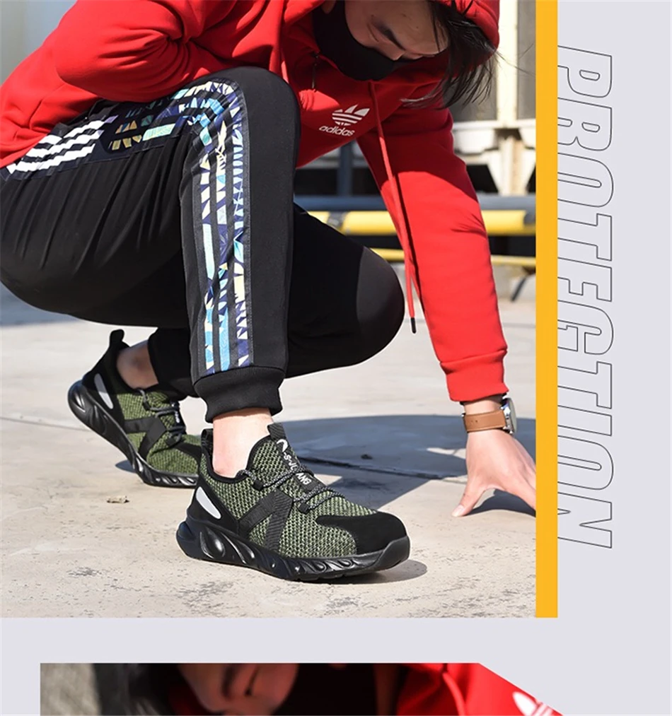 Внутренняя подкладка из дышащей сетки Высококачественные нейлоновые шнурки для обуви Вязальная передняя часть Анти-разбивает сталь toecap Износостойкие резиновые подошвы Предотвращает прокол средней СТАЛЬНОЙ подошвы Дополнительная функция: Защита от ударов, проколов, маслостойкая, противоскользящая, морозостойкая, Антистатическая, высокая термостойкость, изоляция 6кВ. Размер подошвы обуви, единица измерения мм или см (250 мм = 25 см = 40)