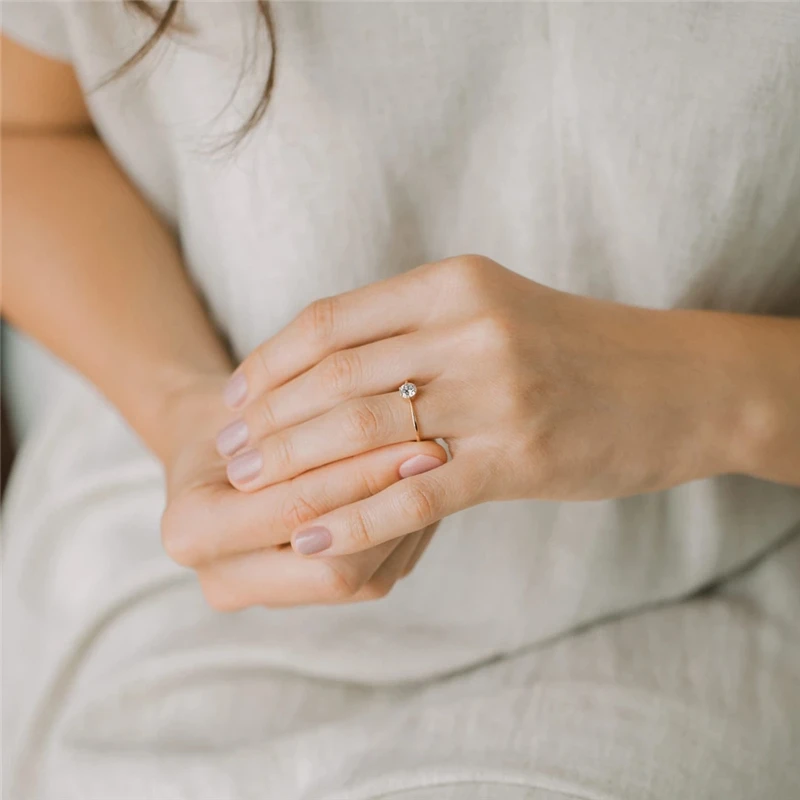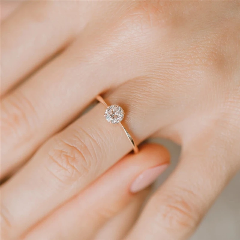 Женское кольцо с фианитом BOAKO, обручальное кольцо золотистого/серебряного цвета с изящным фианитом, тонкое кольцо на палец, ювелирное изделие, B40