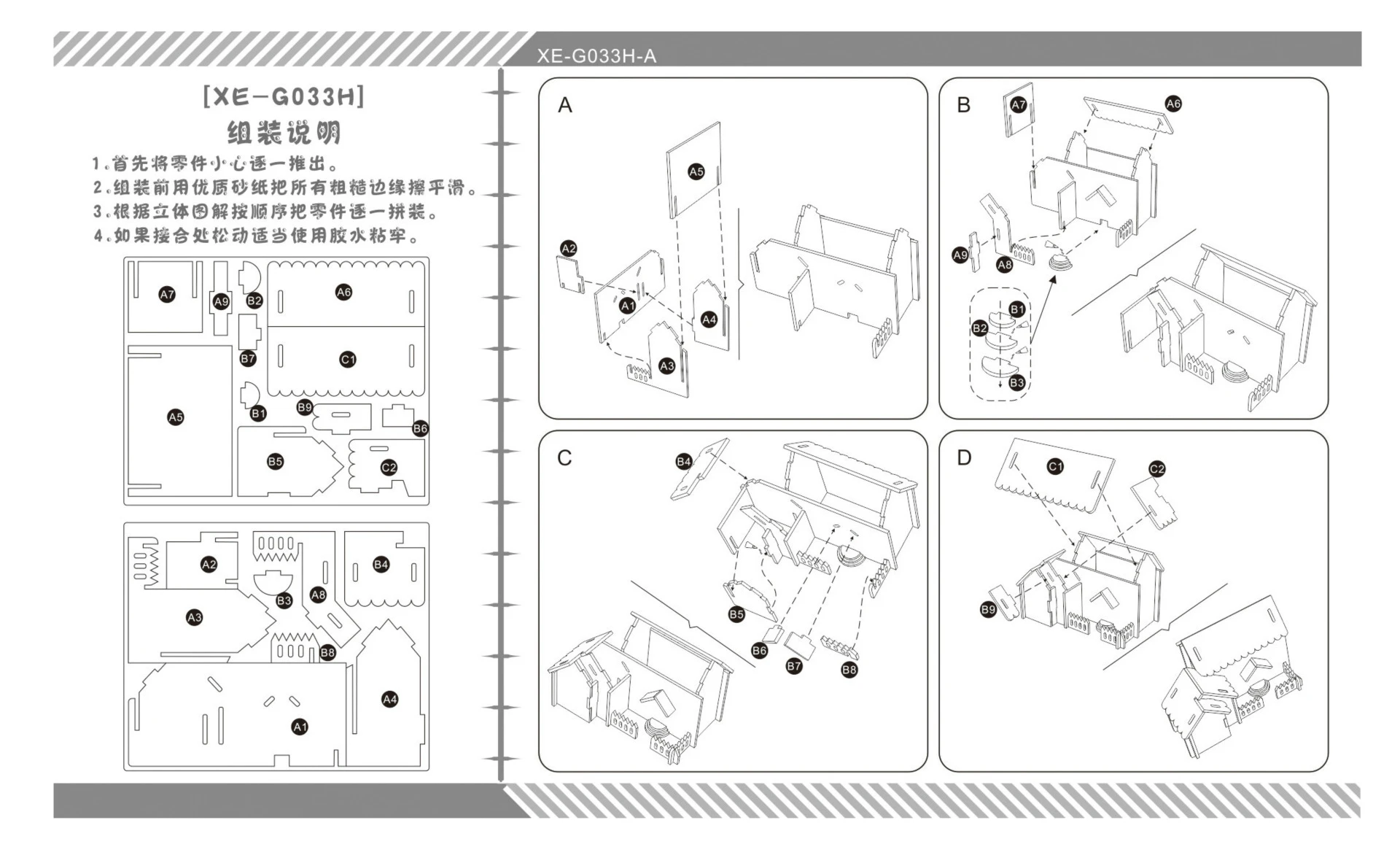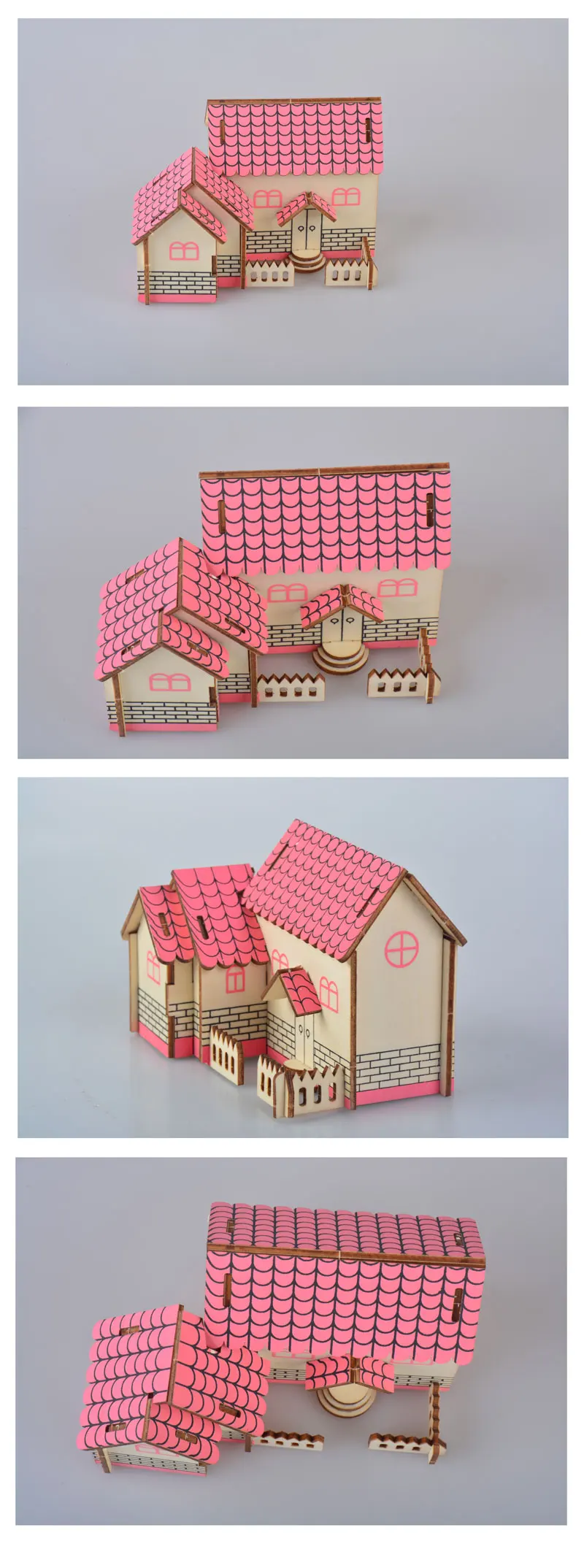 Kids DIY 3D Puzzle Wooden Toy Cartoon Pupple House Model Assemble Pink Educational Toys Creative Jigsaw Puzzles