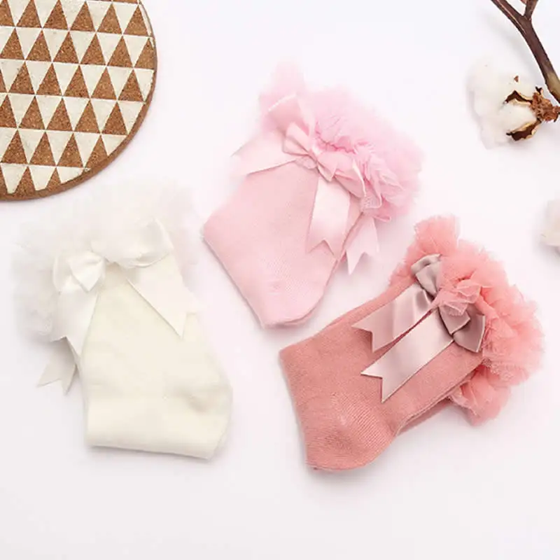 Новейшая модная одежда для малышей *** Высокое качество и абсолютно новый 100% Основной цвет: как на картинкеМатериал: Хлопок, спандекс Стиль: ПринцессаМодные кружевные носки с бантиком Размер: От 0 до 6 лет Таблица размеров: 2018 детские носки для малышей короткие носки принцессы с кружевным цветочным принтом и бантом для девочек хлопковые носки до щиколотки с оборками и оборками От 0 до 8 лет