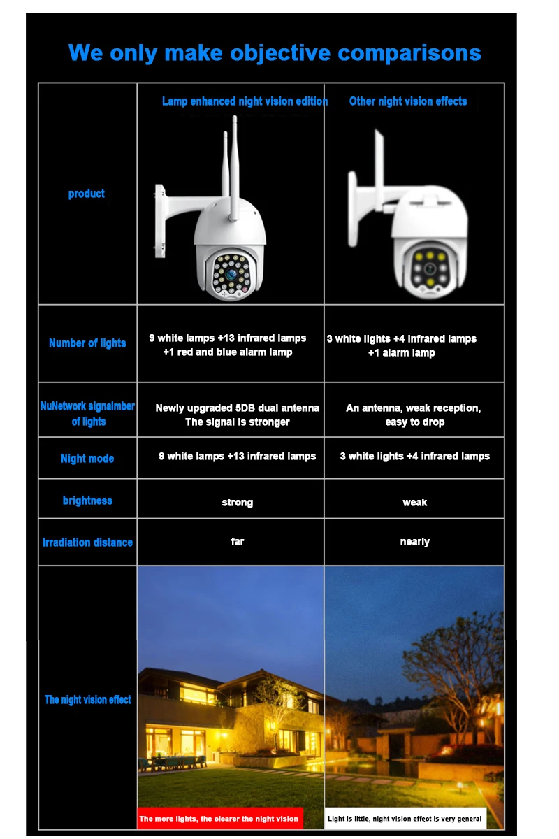 Количество инфракрасных ламп: 13 высокомощных инфракрасных ламп с эффективным расстоянием более 30 метров