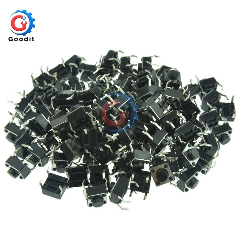 Параметры: 1. Размер: 6x6x5mm. 2. Температура:-30 ~ 70 градусов по Цельсию. 3. Выдерживает напряжение: AC250V. 4. Номинальная нагрузка: 12 в пост. Тока, 50 мА. 5. Сопротивление контакту: ≤ 0,03 Ом. 6. Сопротивление изоляции: ≤ 100 МОм. Посылка: 100 шт., переключатель Tact 6X6X5mm DIP-4