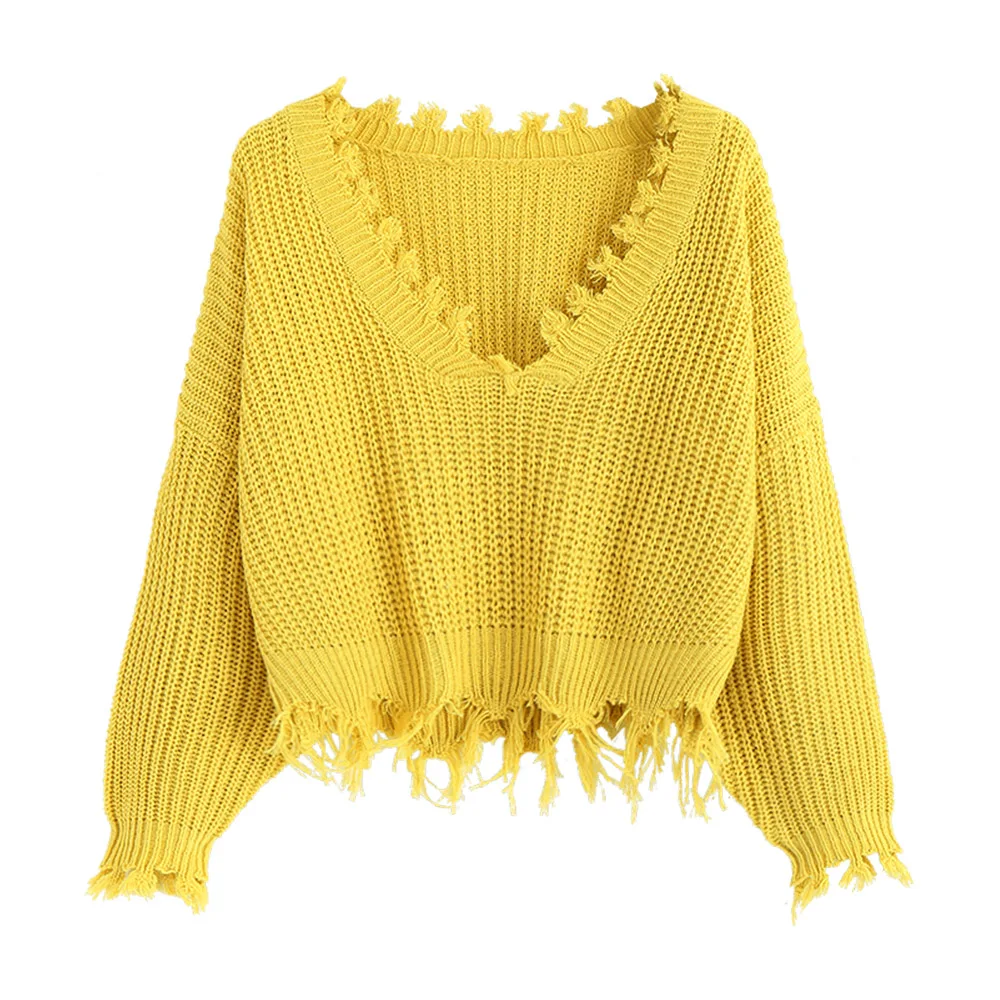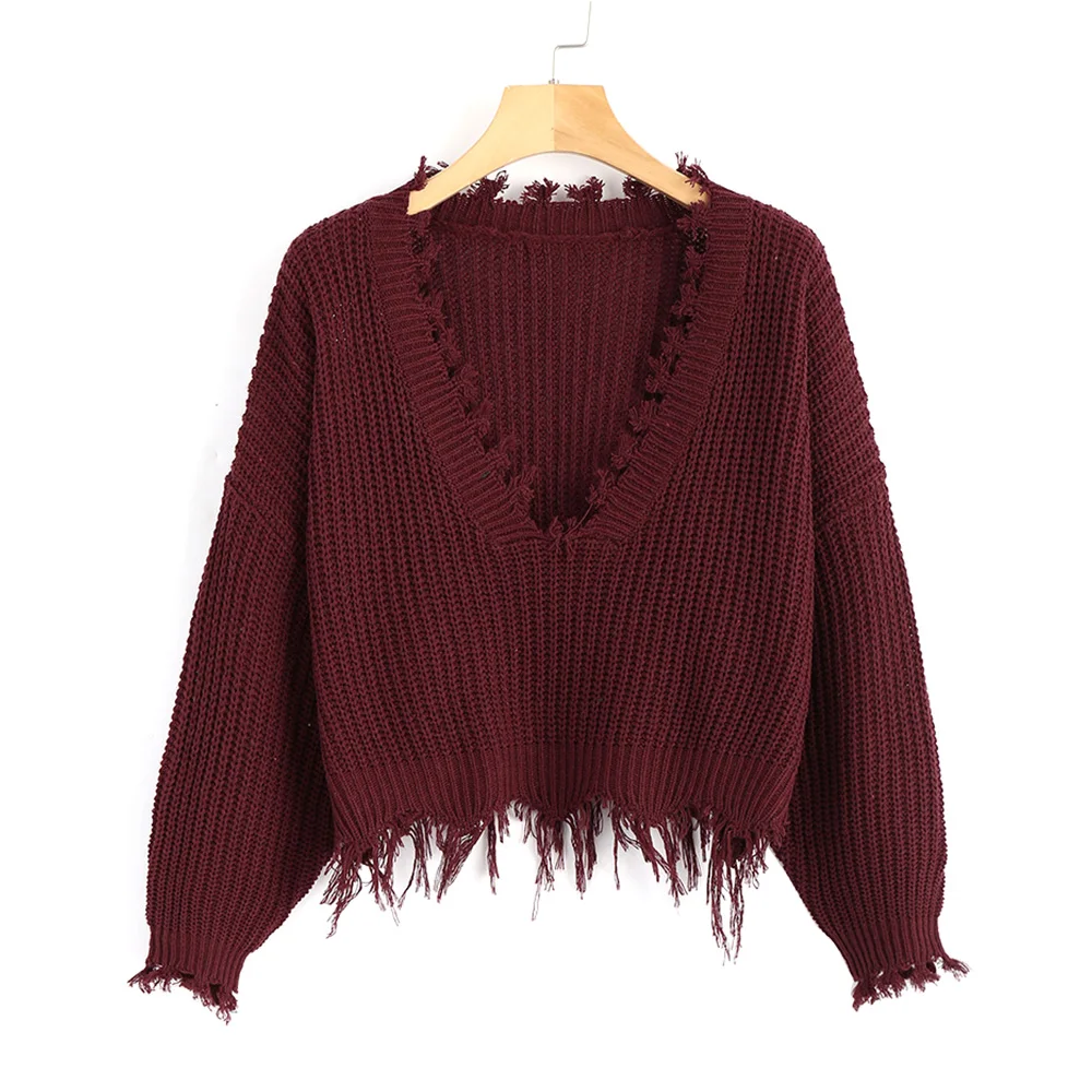 ZAFUL вязаный пуловер с глубоким v-образным вырезом и кисточками, женский осенне-зимний вязаный свитер с длинным рукавом, женский укороченный джемпер, свитер