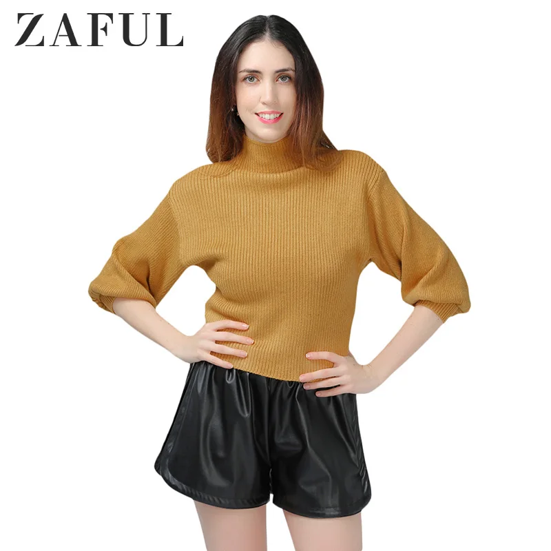 ZAFUL пуловер с рукавами-фонариками тонкий свитер женский осенне-зимний Водолазка с длинным рукавом Harajuku Pull Femme вязаный женский топ
