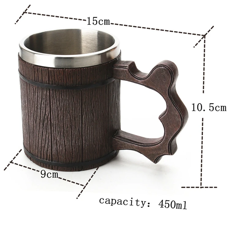 Классическая Имитация деревянная бочка кружка с двойной стенкой из нержавеющей стали посуда для напитков ретро емкость кофе чай пиво Смола Деревянные Кружки чашка
