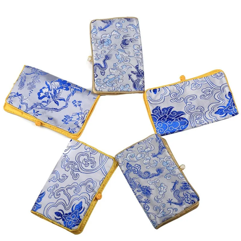 Китайский стиль маленькая молния ювелирные изделия мешки шелковая парча подарки сумки Классический узел ювелирные кольца держатель мешок