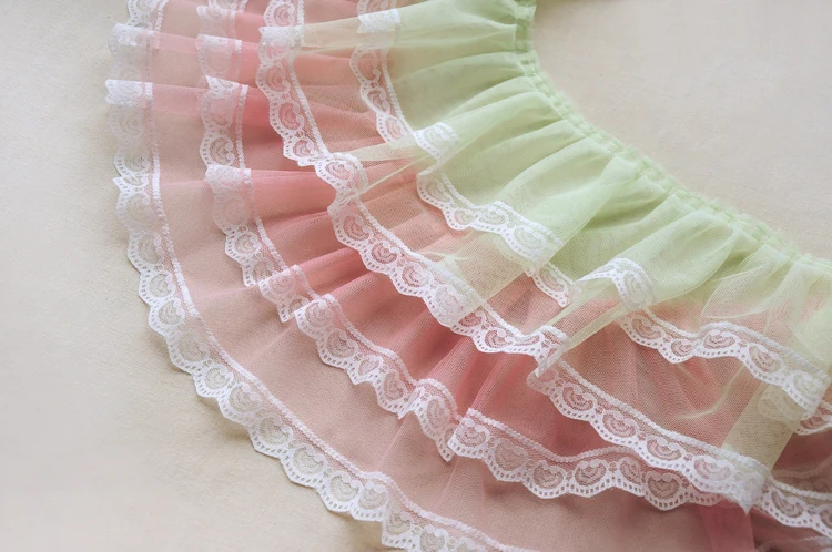 17 см широкая Двойная сетка белая кружевная плиссированная Изысканная одежда ткань DIY кукольная одежда юбка Швейные аксессуары украшения
