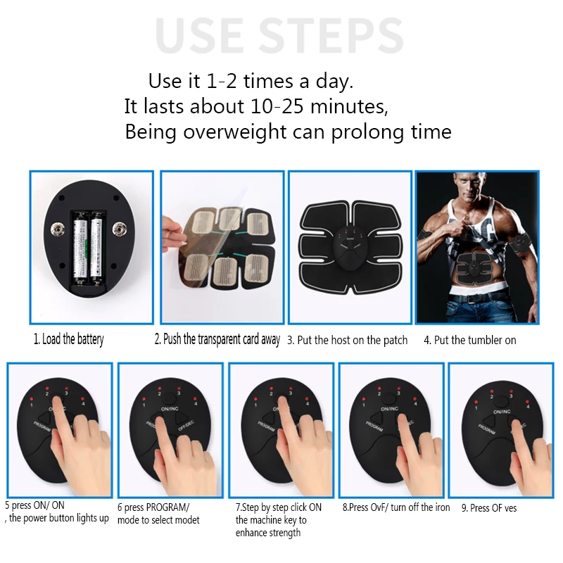 Он предназначен для всех тренажеров AB, поясного триммера, ABS тонера, мышц тела, стимулятора ABS и т. Д.