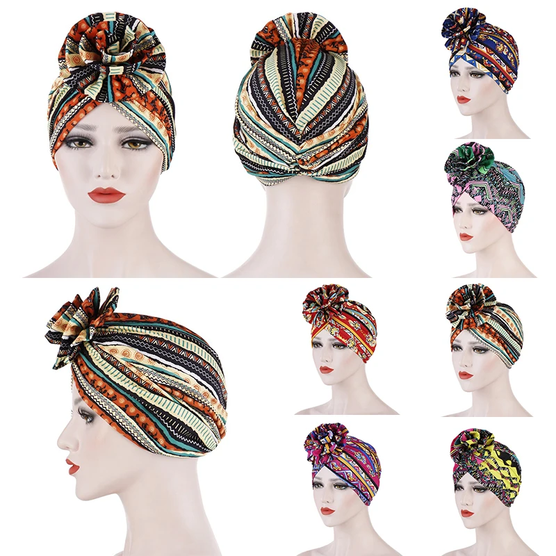 3D цветок тюрбан из хлопка Кепка Chemo эластичный головной платок женский мусульманский бандана бини