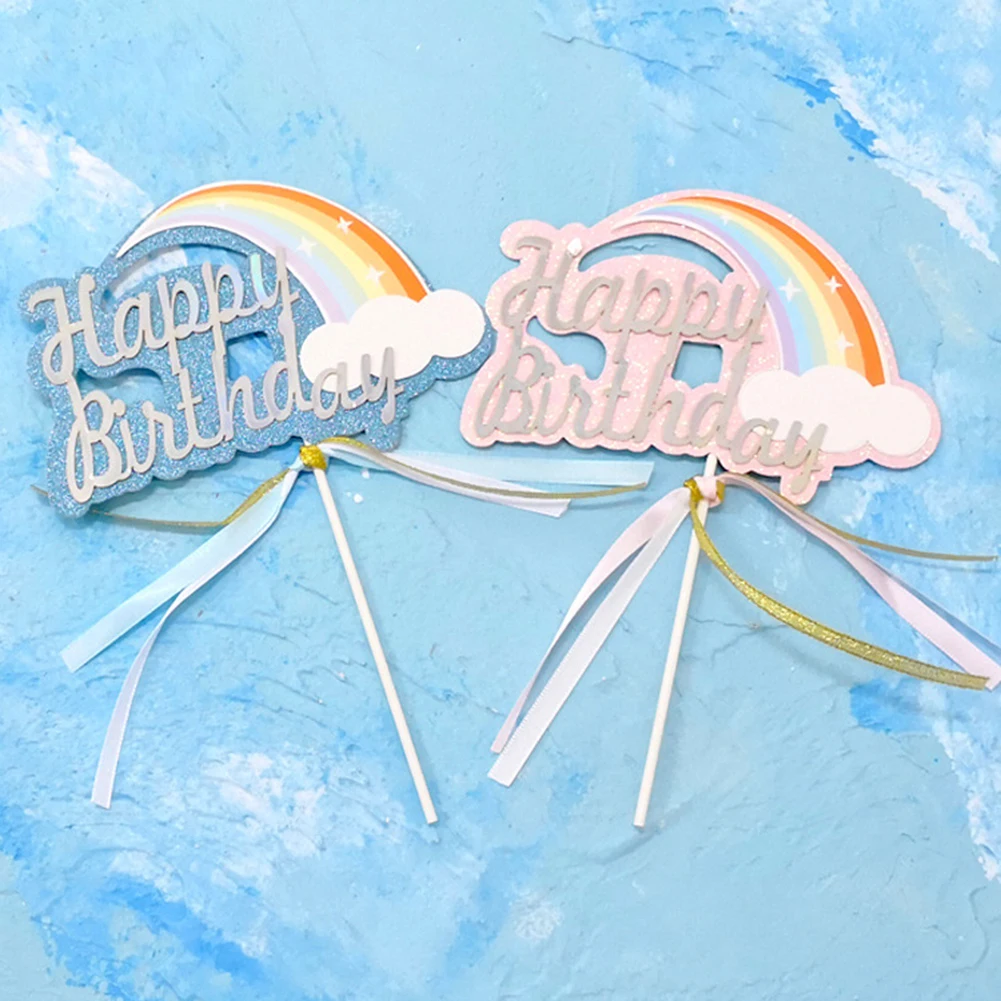 Радужное облако счастливое украшение для именинного торта бумажный торт флаг украшения торта флаги детский душ День рождения украшения