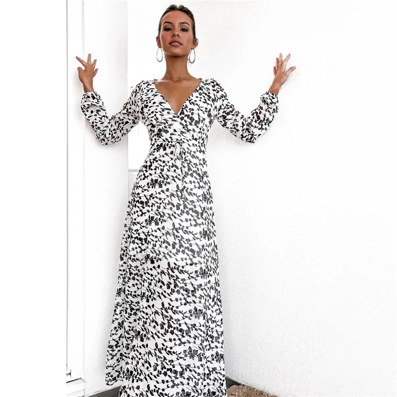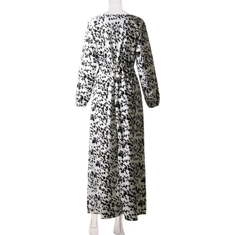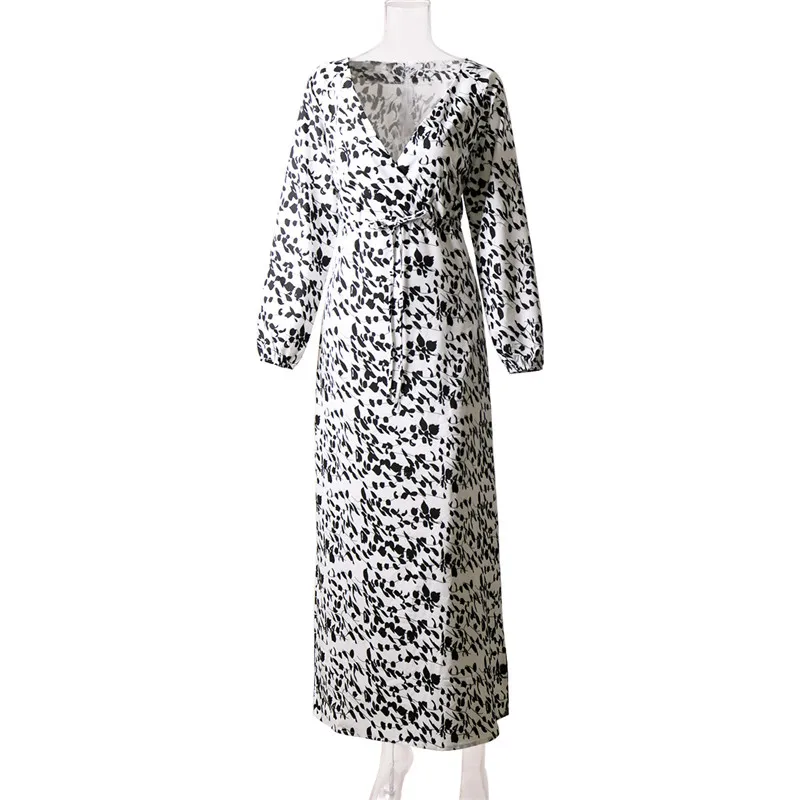 Женское длинное платье с разрезом, белое Бандажное платье с v-образным вырезом, длинным рукавом и высокой талией, на шнуровке, осень 2019