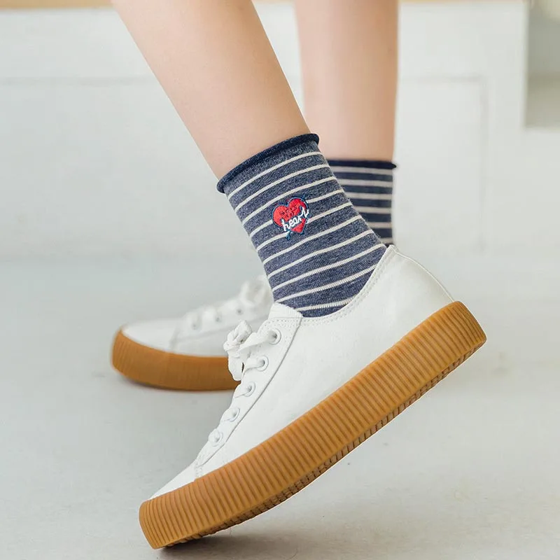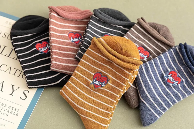 COSPLACOOL/теплые носки с вышивкой и надписью «сердце», забавные носки в полоску Harajuku, креативные милые носки, женские кальцитовые носки