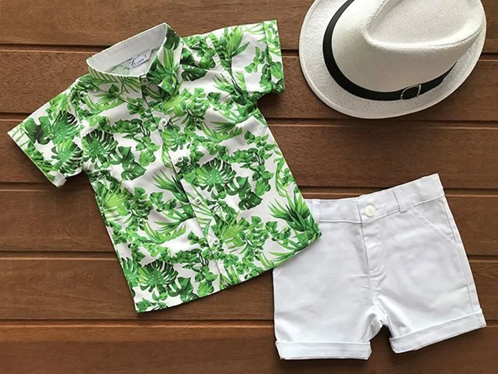 Новая одежда джентльмена для маленьких мальчиков Гавайские рубашки топы, шорты, штаны!