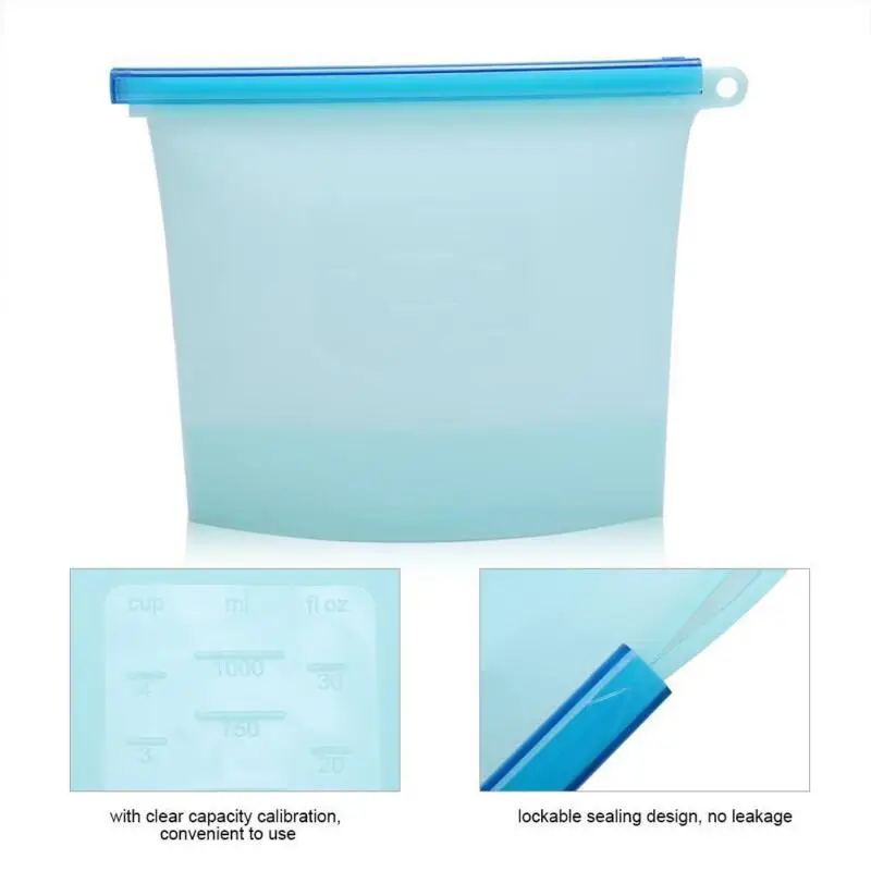 1000 мл многоразовая силиконовая сумка для хранения пищевых продуктов обеденная