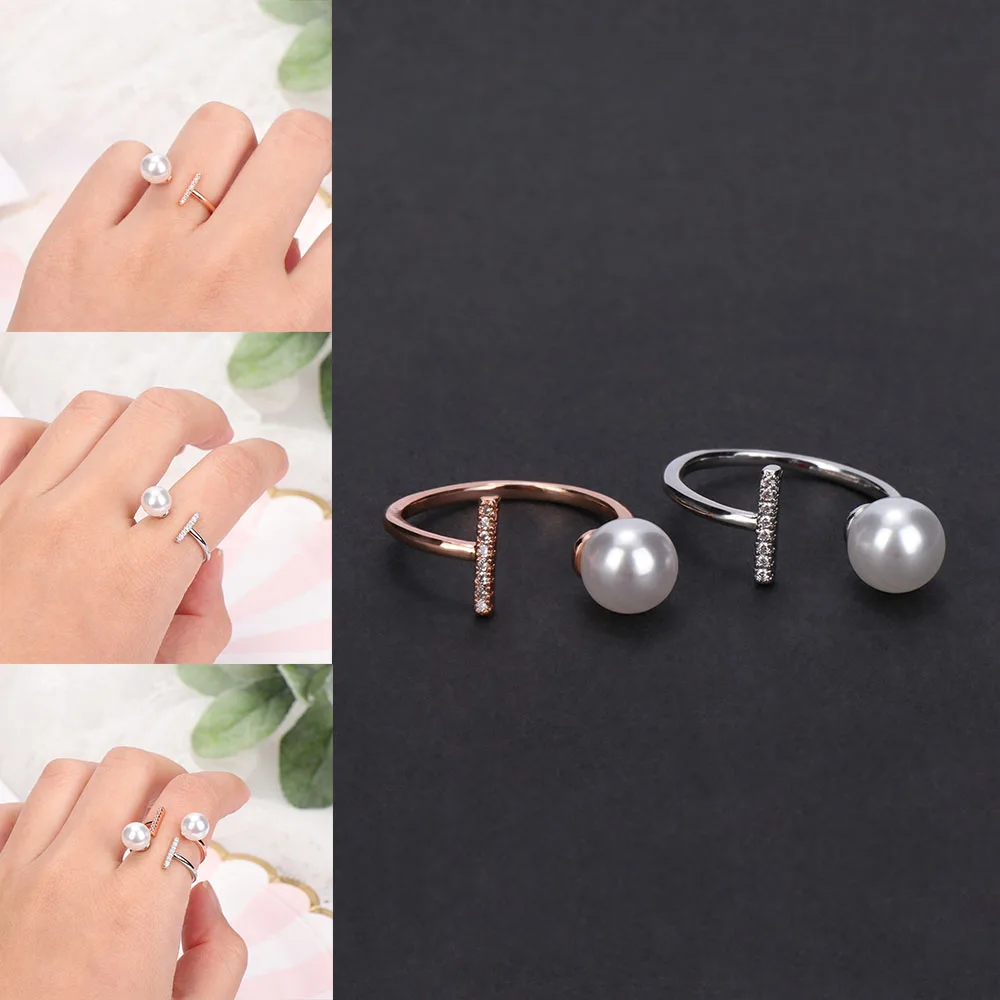 Модное регулируемое женское кольцо с искусственным жемчугом, для свадебной вечеринки, розовое золото, подарок на день Святого Валентина, очаровательные ювелирные изделия, аксессуары, подарок