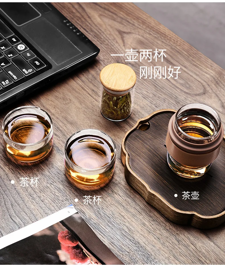 Наборы чайной посуды для путешествий стеклянный кунг-фу чайный горшок напольный портативный термостойкий стеклянный es с резными чехлами фильтр цветочный чай маленький