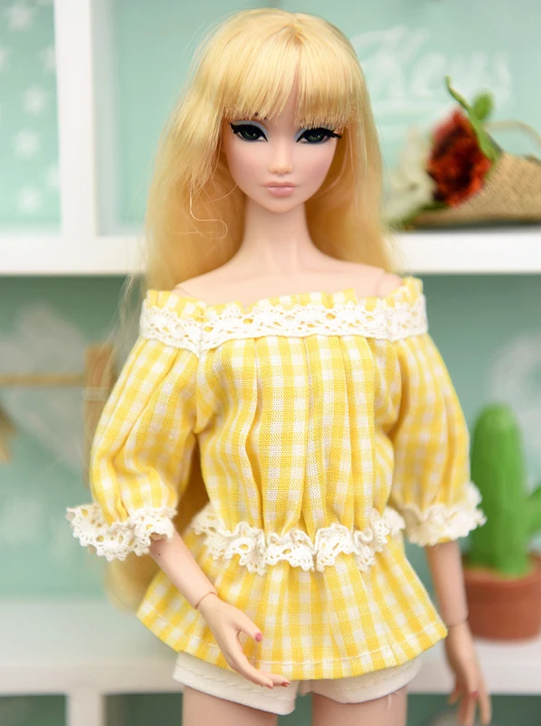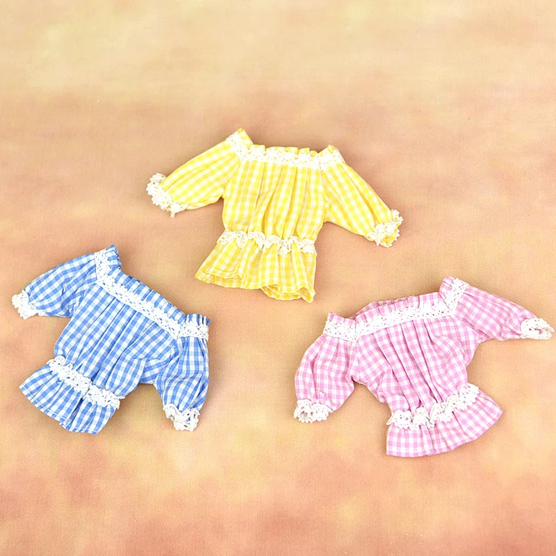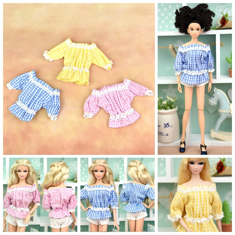 Fashion Off-shoulder Plaid Lace Clothes For Barbie Doll 1/6 Flounced Top Shirt Outfits For XinYi Momoko BJD Doll Accessory