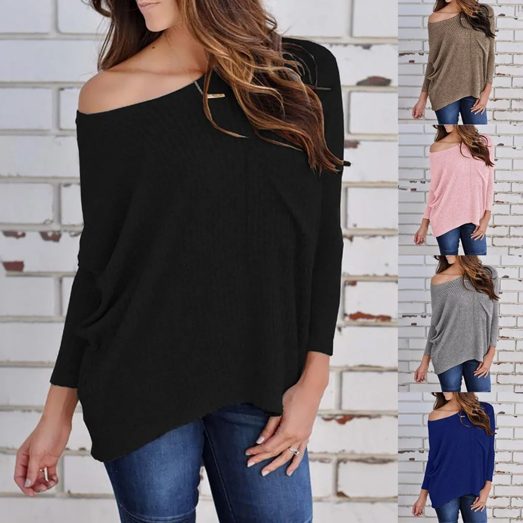 Модный женский свитер, однотонный Вязаный топ с длинными рукавами и дырками на плечах