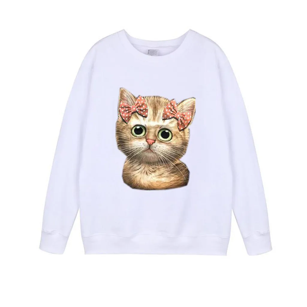 Женская Повседневная Толстовка с длинным рукавом и принтом кота, пуловер, блузка