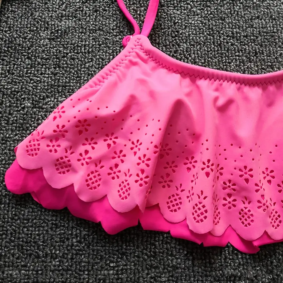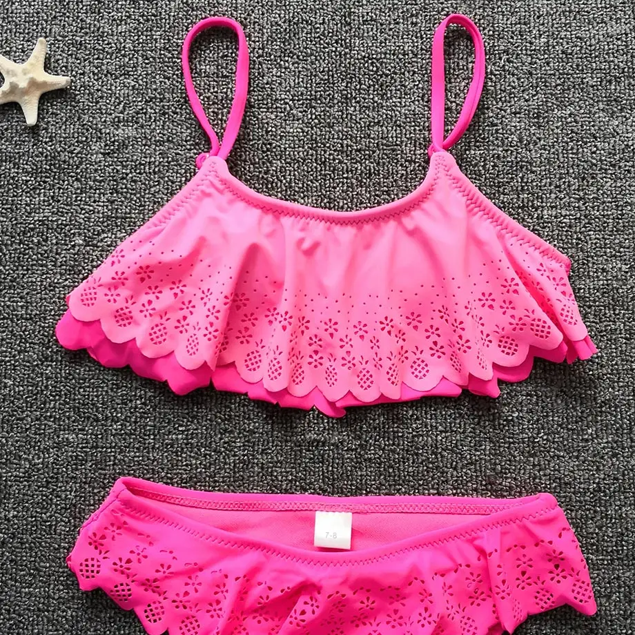 Купальный костюм для девочек с рюшами, Детский комплект бикини для девочек, Falbala, два предмета, детский купальник, пляжный танкини, купальный костюм для девочек, 2020
