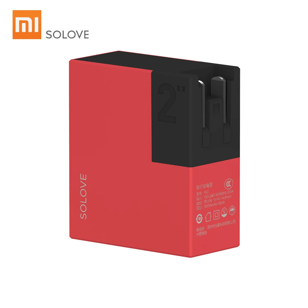 Xiaomi SOLOVE портативное зарядное устройство для путешествий W2 складной Универсальный США ЕС Великобритания штекер Адаптер 5000 мАч банк питания USB с двумя выходами
