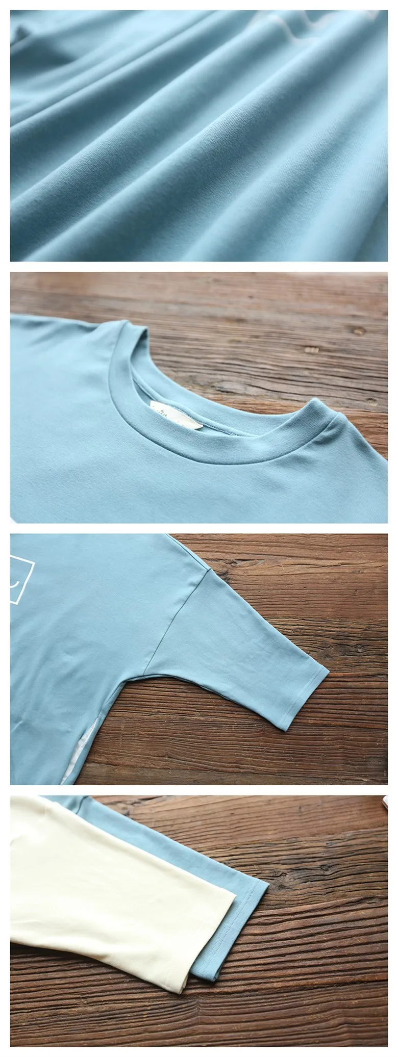 2020 корейский стиль весеннее женское короткое платье с круглым вырезом синяя бежевая туника с принтом половина рукав летучая мышь рубашка оверсайз платье AF880