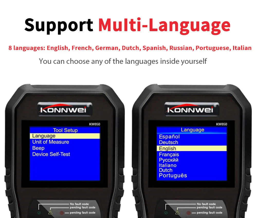Автомобильный диагностический сканер KONNWEI KW850 OBD2 является универсальным диагностическим сканирующим инструментом для нескольких транспортных средств, поддерживает все 10 режимов тестирования OBDII
