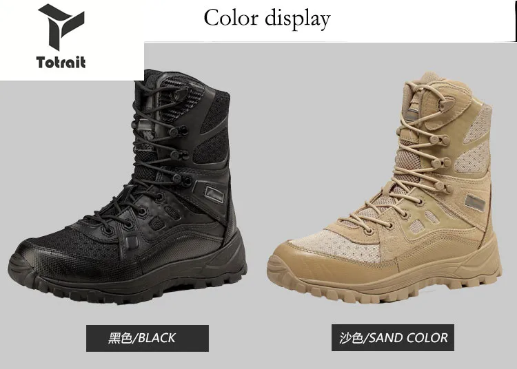 Название продукта: тактические ботинки Подходит для сезона: подходит для всех сезонов Вес нетто: 1,2 кг Цвет: черный/песочный Отдел стиля: шнуровка Материал обуви: кожа Материал подкладки: качественная ткань Материал подошвы: ЭВА Размер модели: 39-45