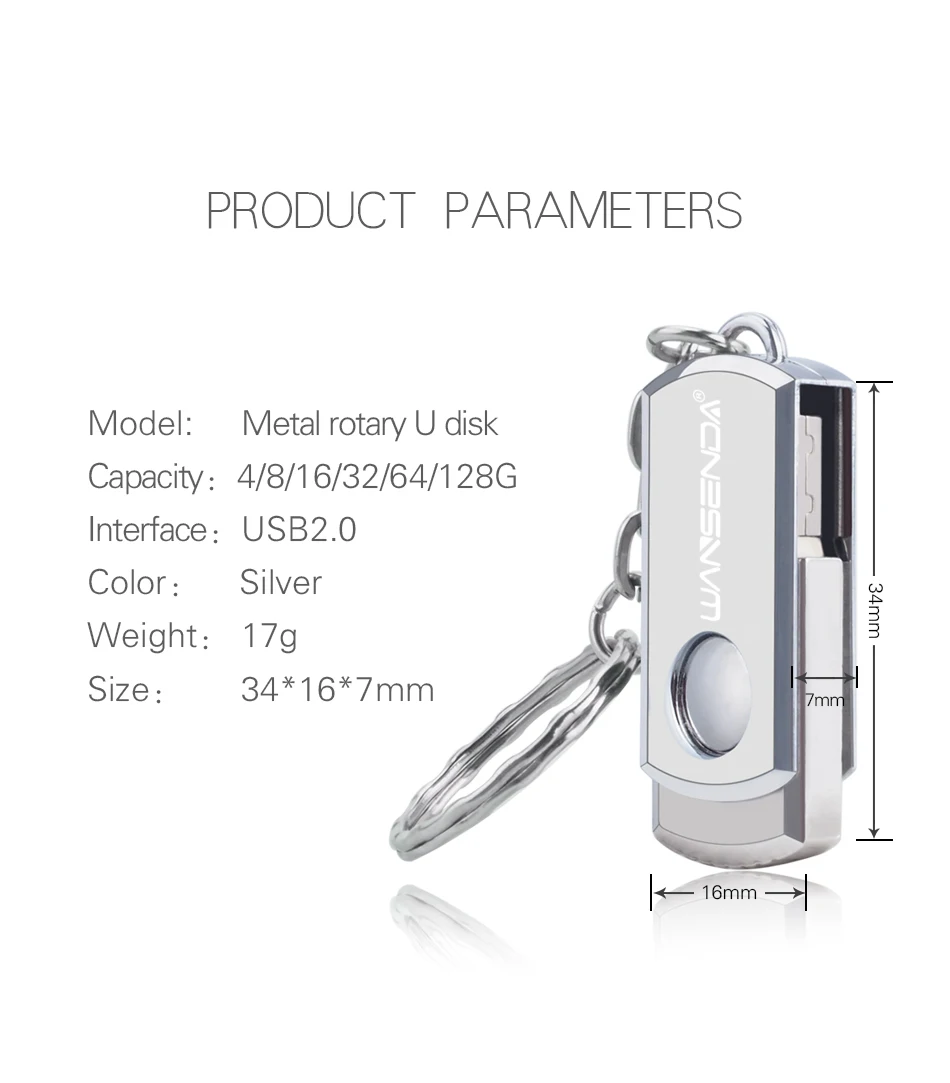 USB-флеш-накопитель WANSENDA из нержавеющей стали, 8/16/32/64/128 ГБ