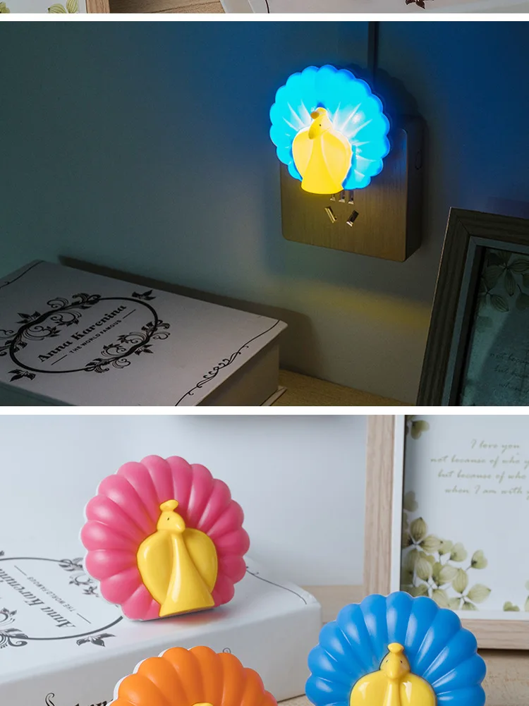 Маленький ночник с изображением павлина, светодиодный индукционный светильник, ночник, энергосберегающий светильник для детей, подарки для спальни