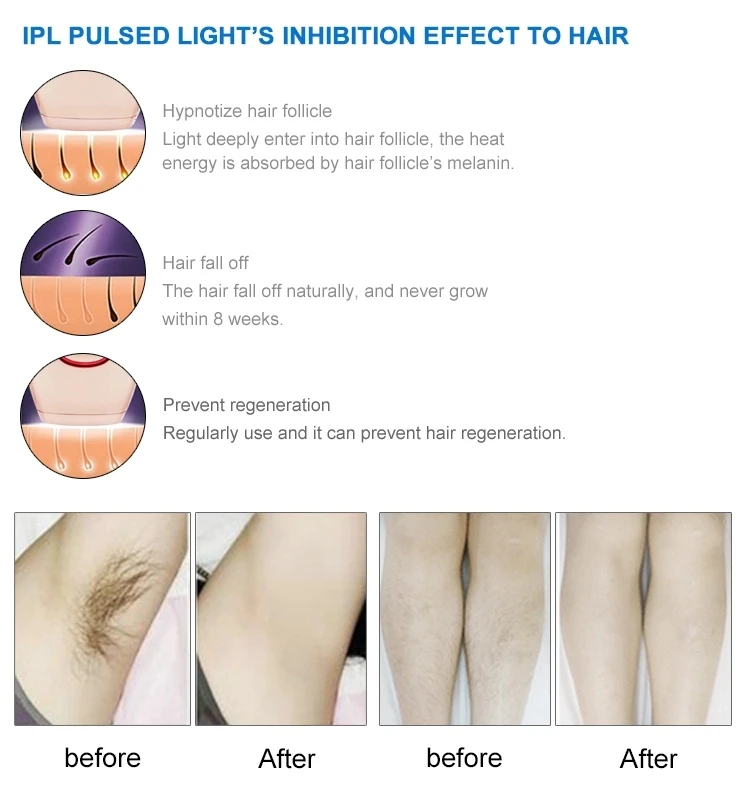 Что такое лазерную машинку? IPL (интенсивный импульсный светильник)-это своего рода светильник с высокой энергией и широкой длиной волны, в диапазоне от 530 нм до 1200 нм. Фототермическое и фотохимическое действие будет вызвано излучением IPL. С одной стороны, IPL способствует воспроизводству и повторному объединению коллагена, что делает кожу более гибкой и гладкой. С другой стороны, светильник с длинной длиной волны может легко пройти через слой эпидермиса и будет абсорбироваться выборочно в приоритете патологическими пигментами, которые будут разрушены высокой температурой, и получить эффект удаления пигментов, сосудистых повреждений и нежелательных волос.