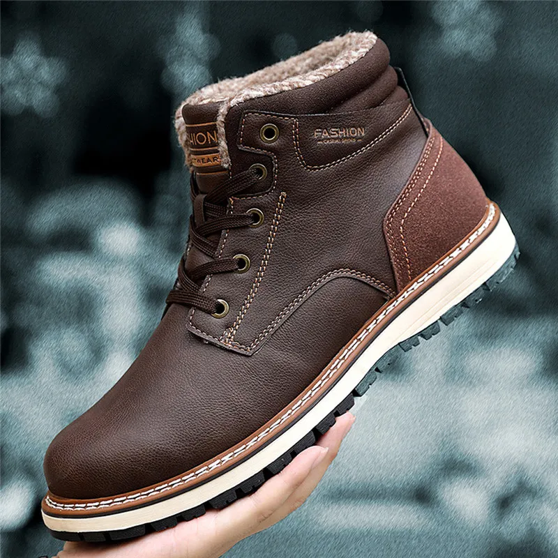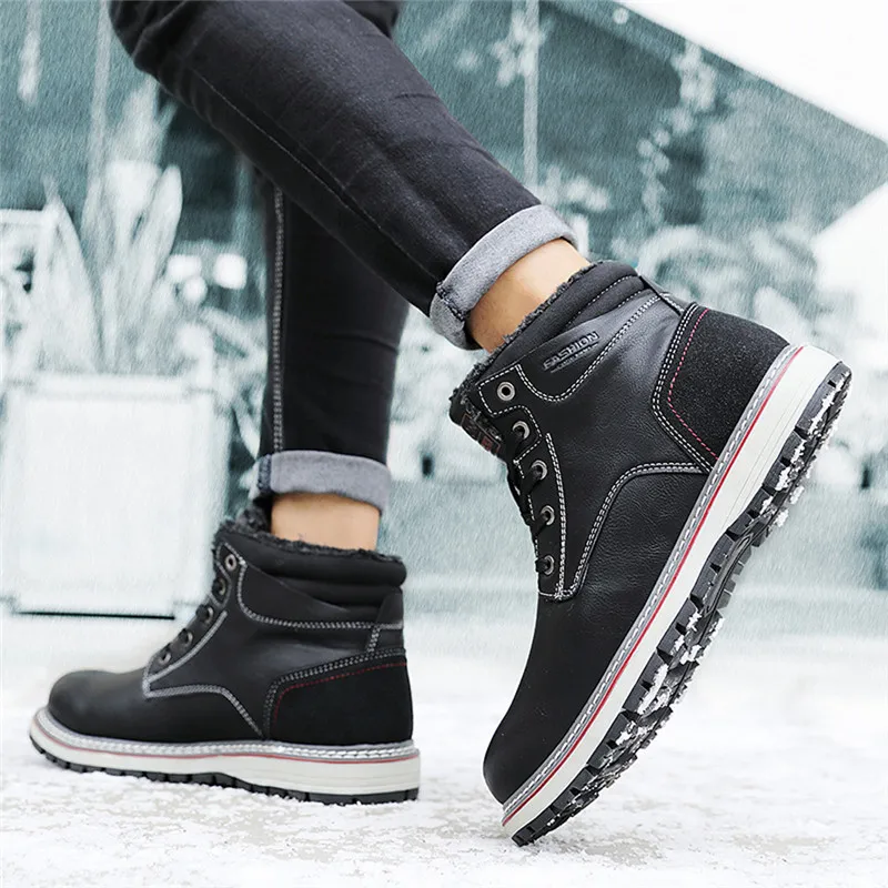 Зимние мужские ботинки; теплые зимние ботинки; Мужская водонепроницаемая обувь; кожаная Рабочая обувь; мужские кроссовки; мужские ботильоны на резиновой подошве