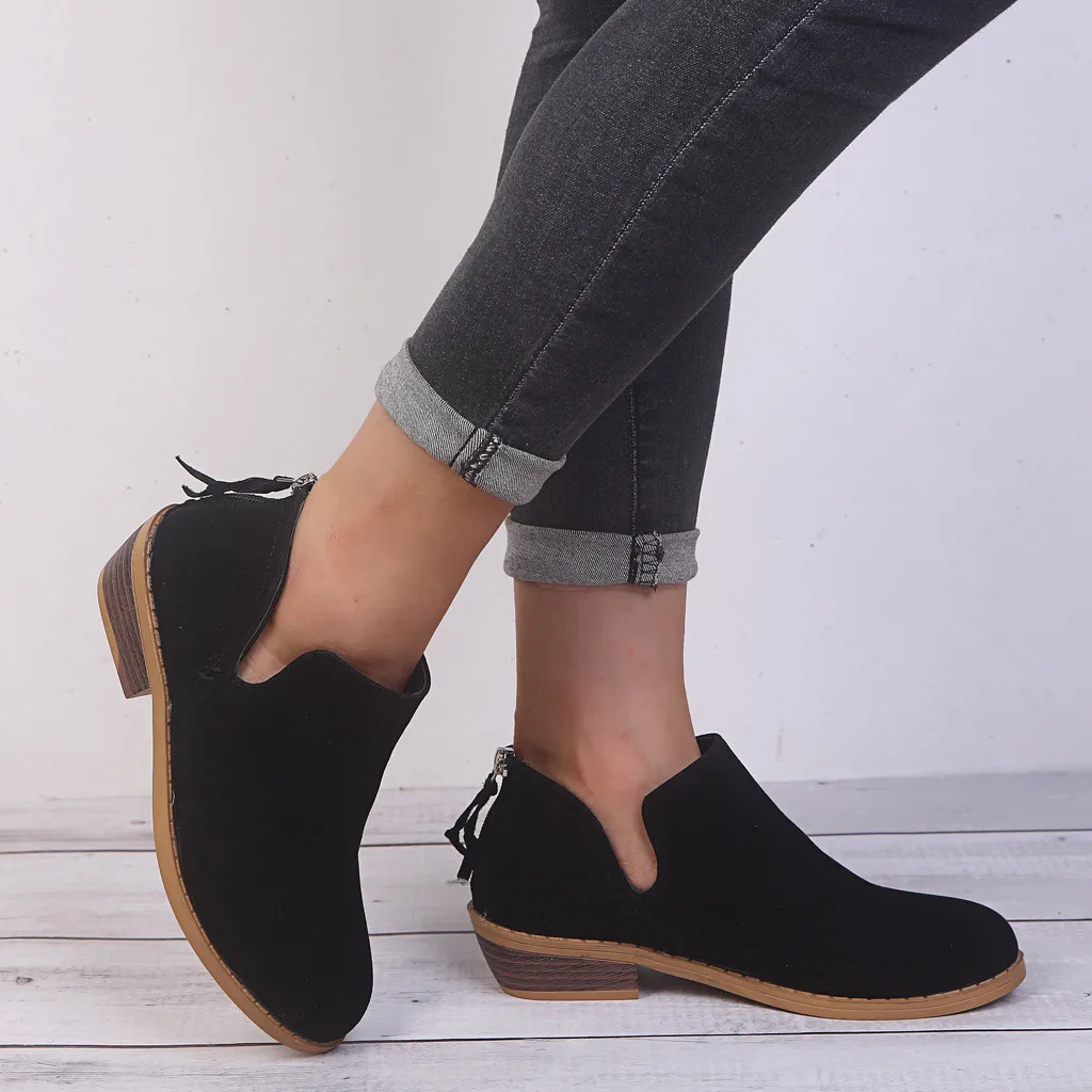 Женская Осенняя обувь; модные однотонные лоферы; короткие ботинки