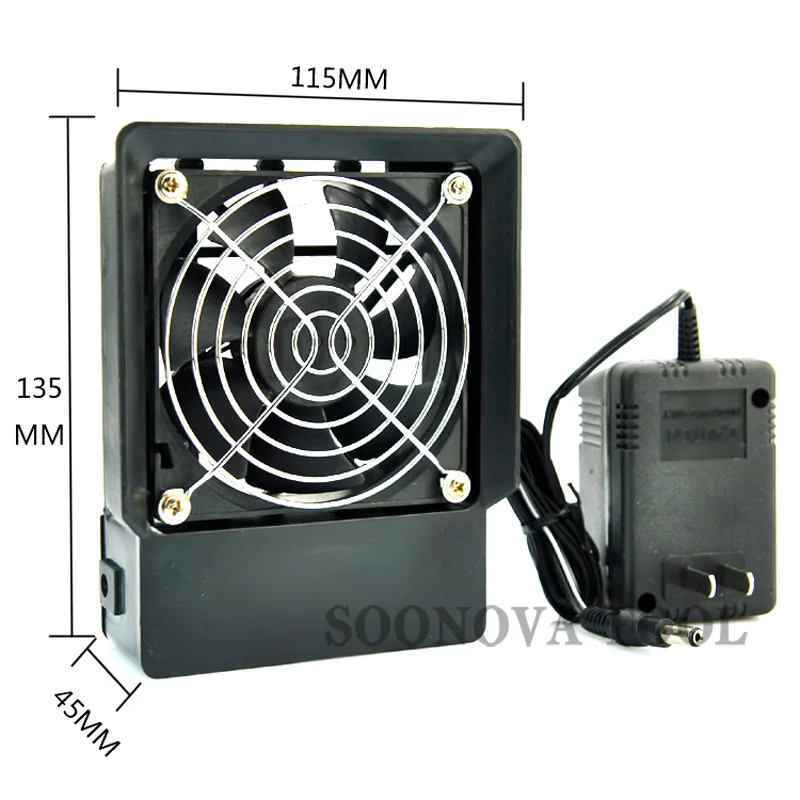 Features: It can easily adsorbed and fixed onto an iron, with a switch, with a 12V power supply. Smoking device used to prevent absorption of toxic lead. Compact, easy to move; Smooth operation, low noise.