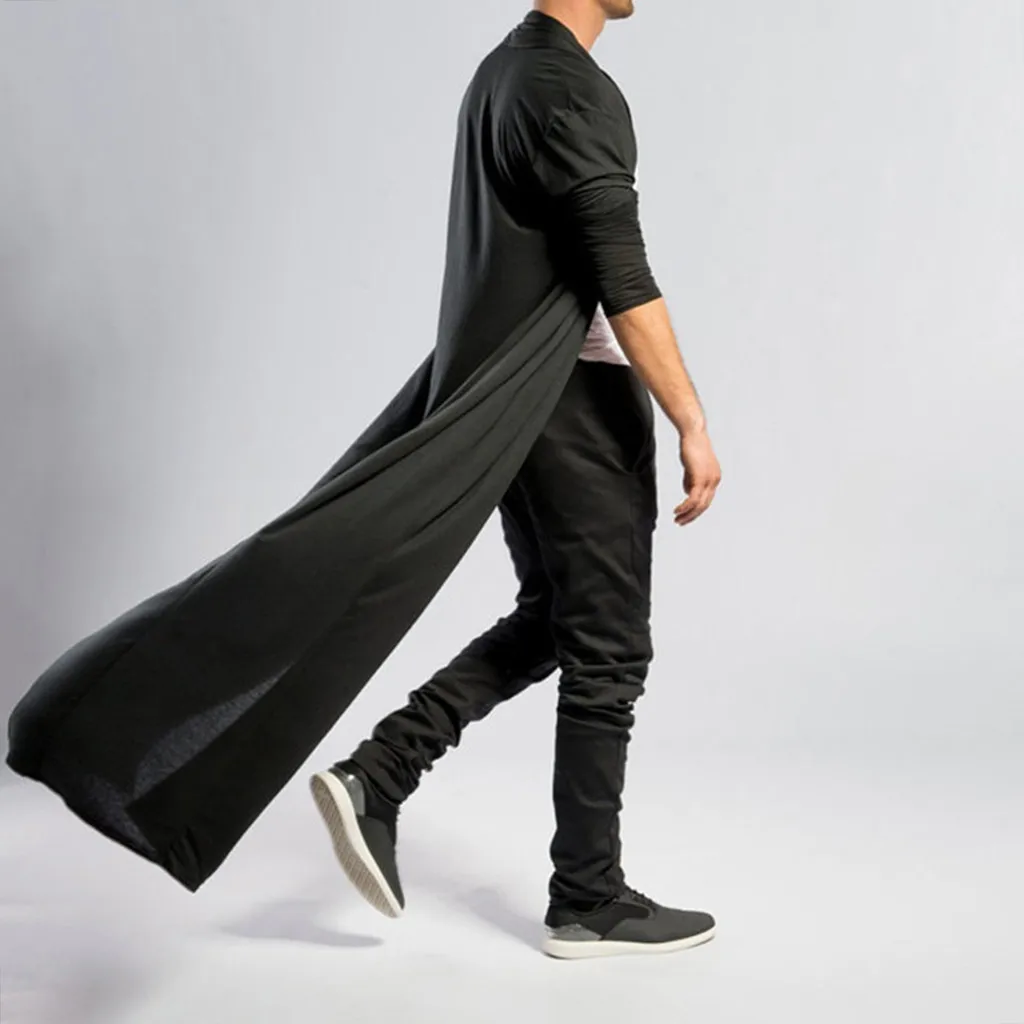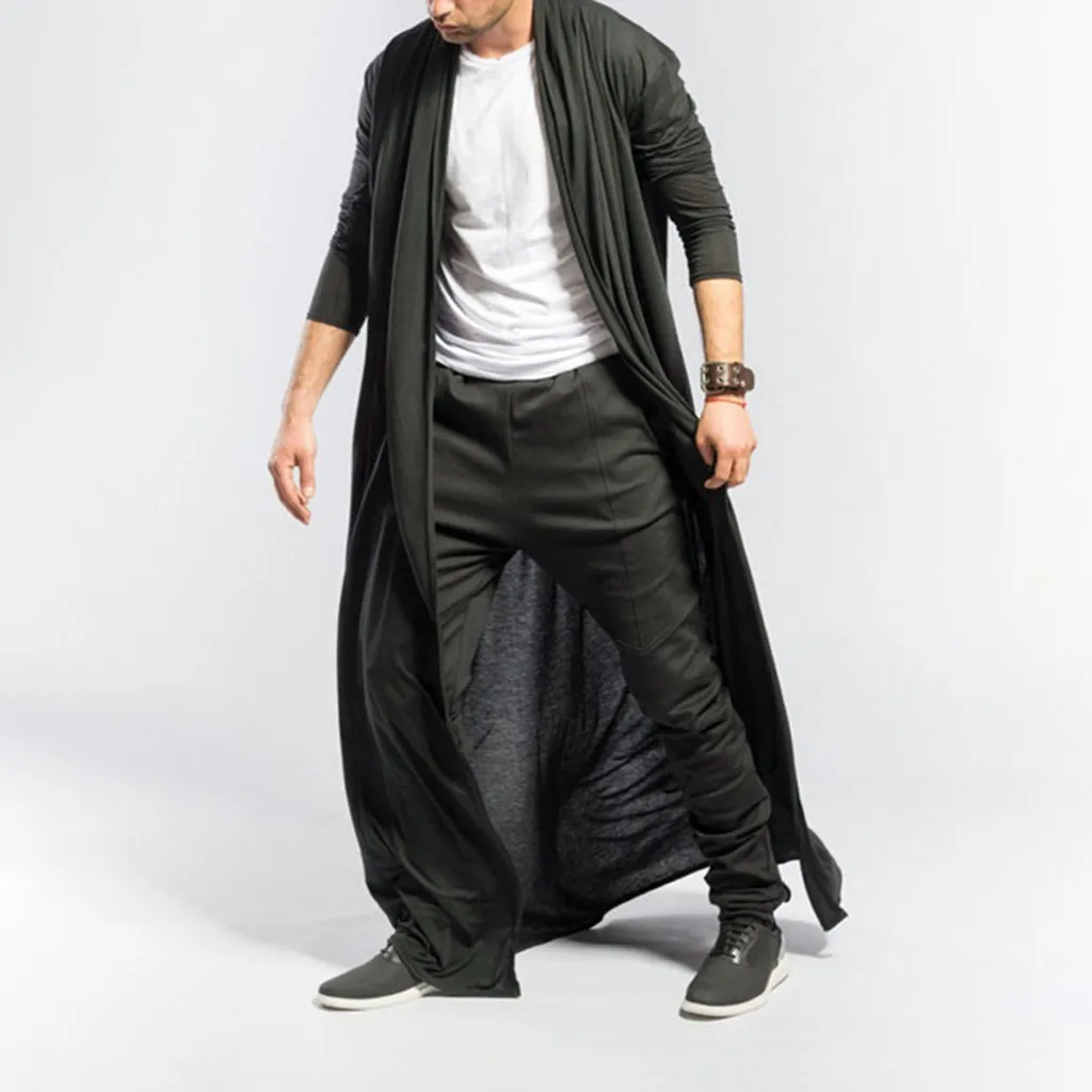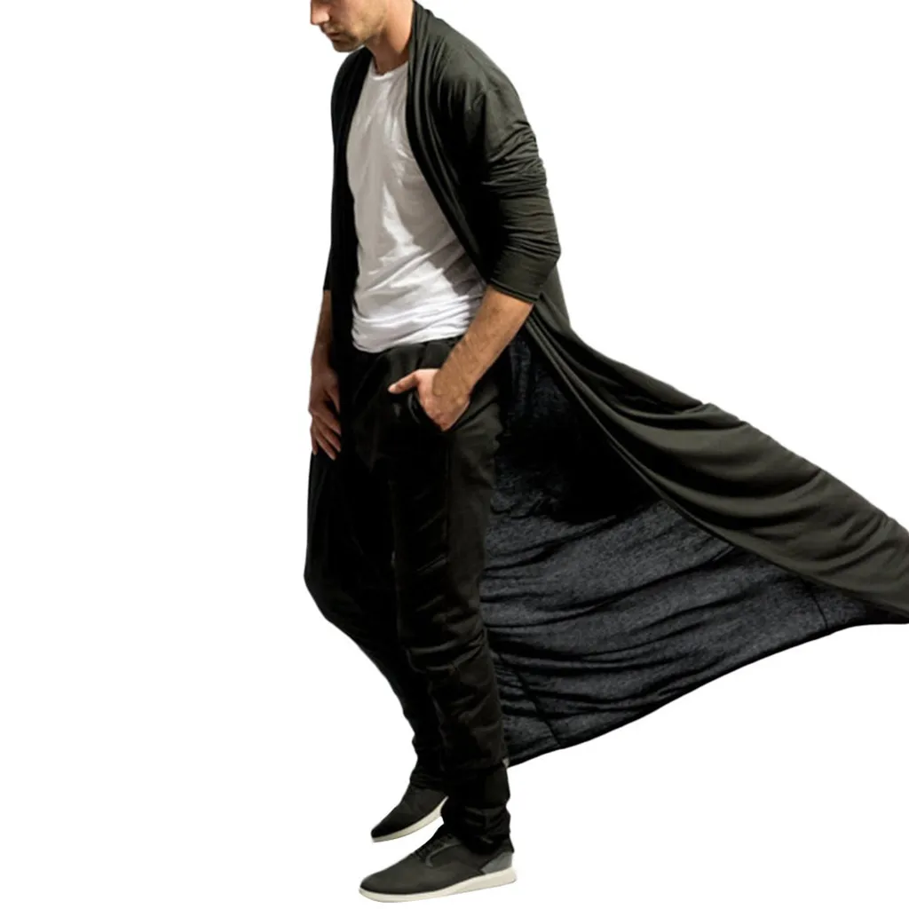 Мужские кардиганы, Повседневная тонкая однотонная длинная рубашка, топы, длинное пальто, верхняя одежда размера плюс