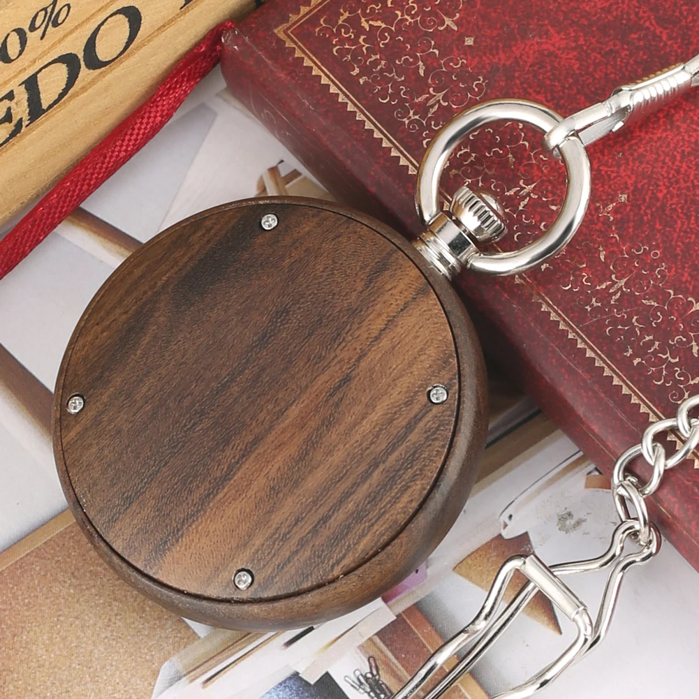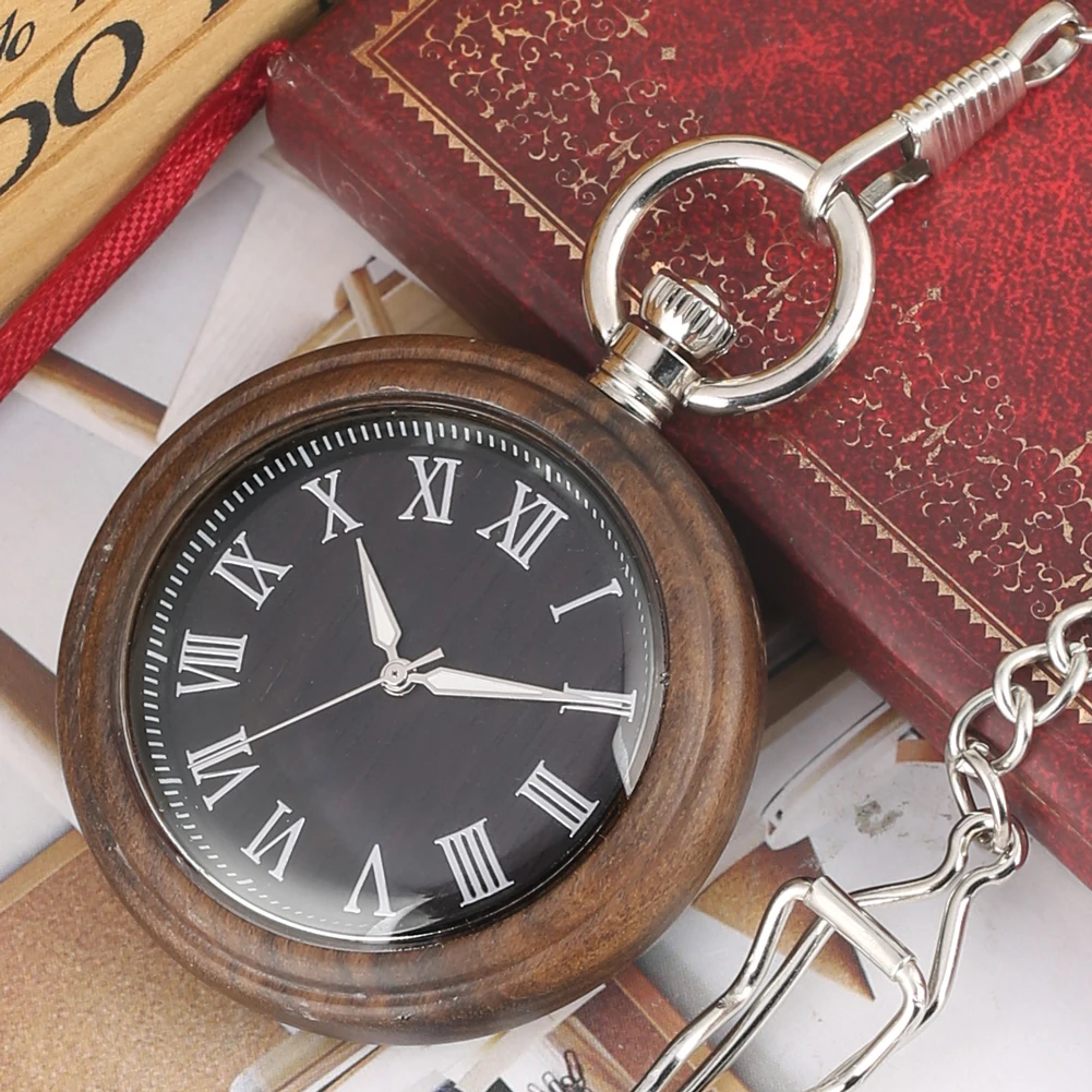 Exquisite Appearance: This quartz pocket watch was made of a concise wooden watch dial with Roman numerals and night light pointers, which is both practical and fashionable.