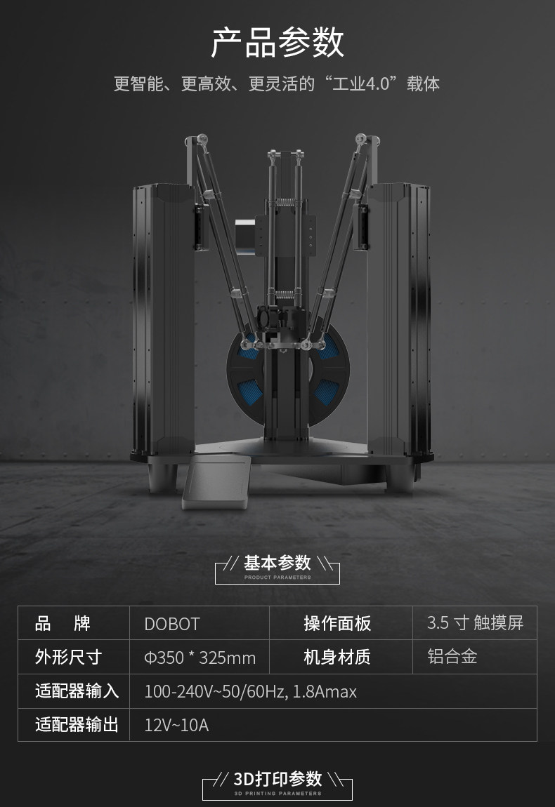 Внешний размер: диаметр 350*325 мм Входное напряжение: 100-240 В ~ 1,8 Гц, амакс Выходное напряжение: 12 В ~ 10 А Применение: сенсорный экран 3,5 дюйма Материал машины: алюминиевый сплав Диаметр сопла: 0,4 мм Температура сопла: 190-260 градусов Размер печати: диаметр: 100*100 мм Температура подогреваемого кровати: 50 ~ 100 градусов Нить: 1,75 PLA, ABS, PC, FLEX Разрешение слоя: 0,05-0,3 мм Скорость печати: 10-100 мм/секция.