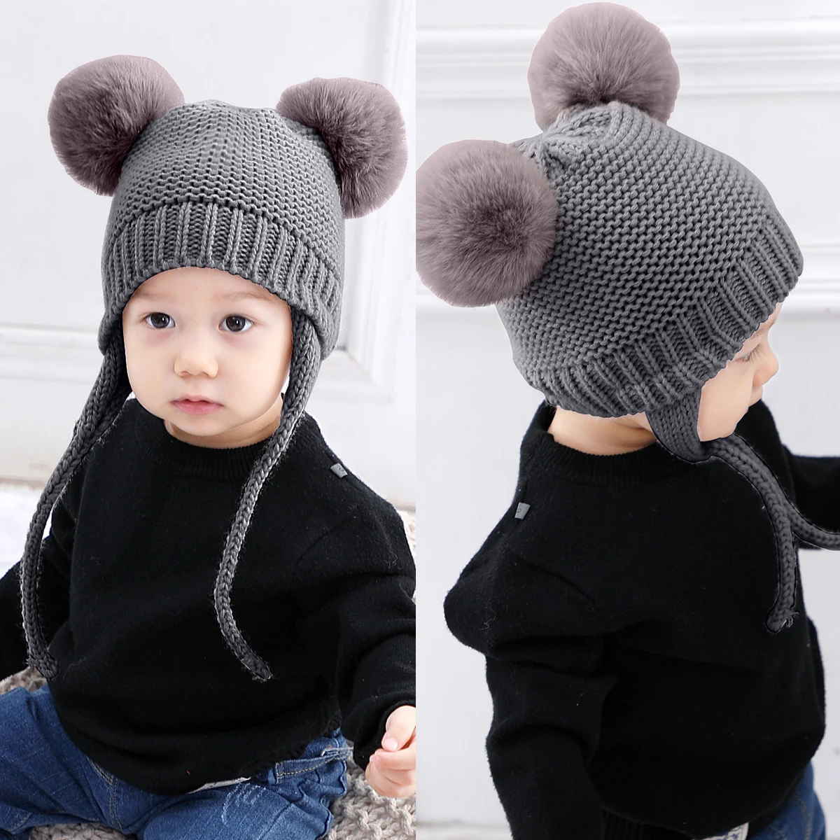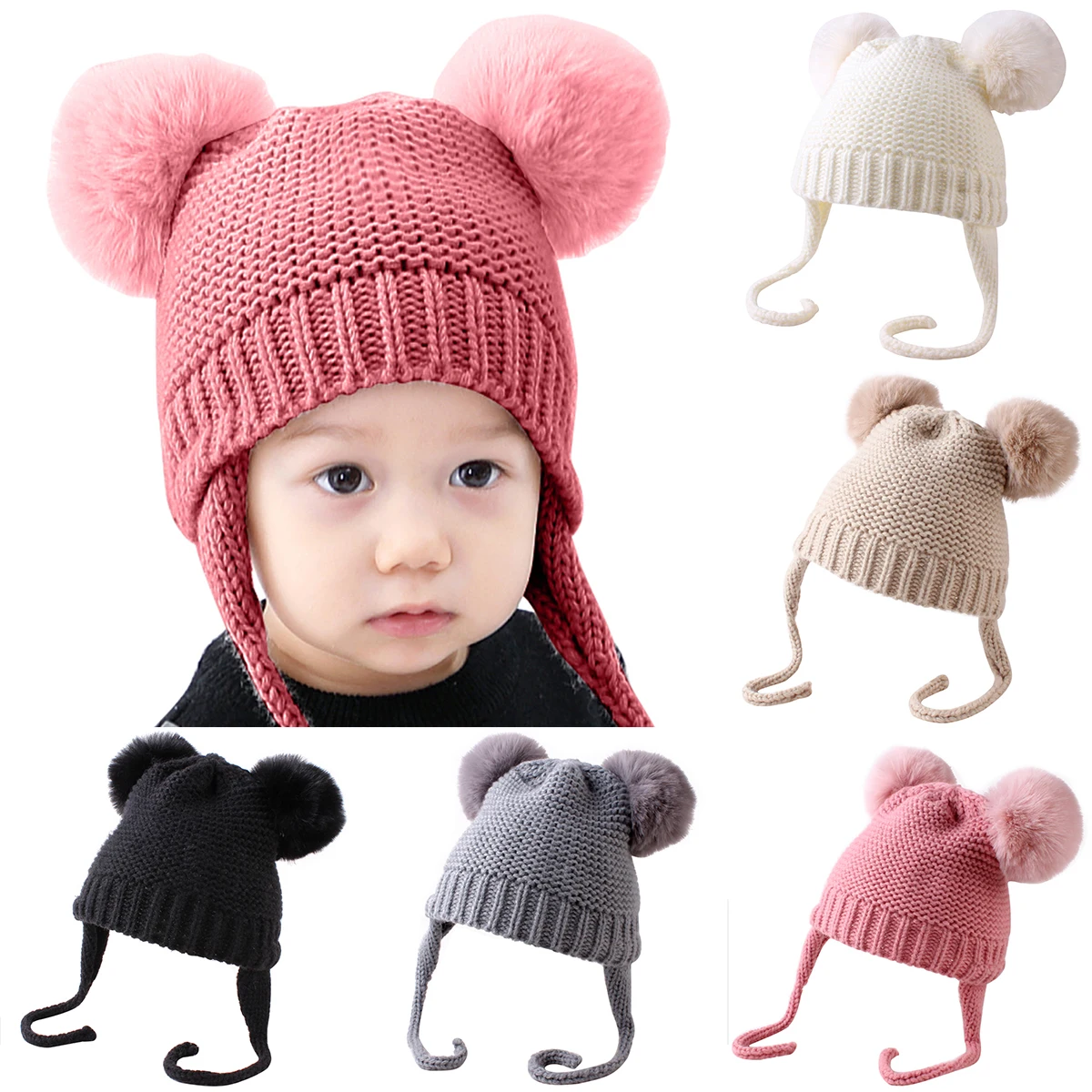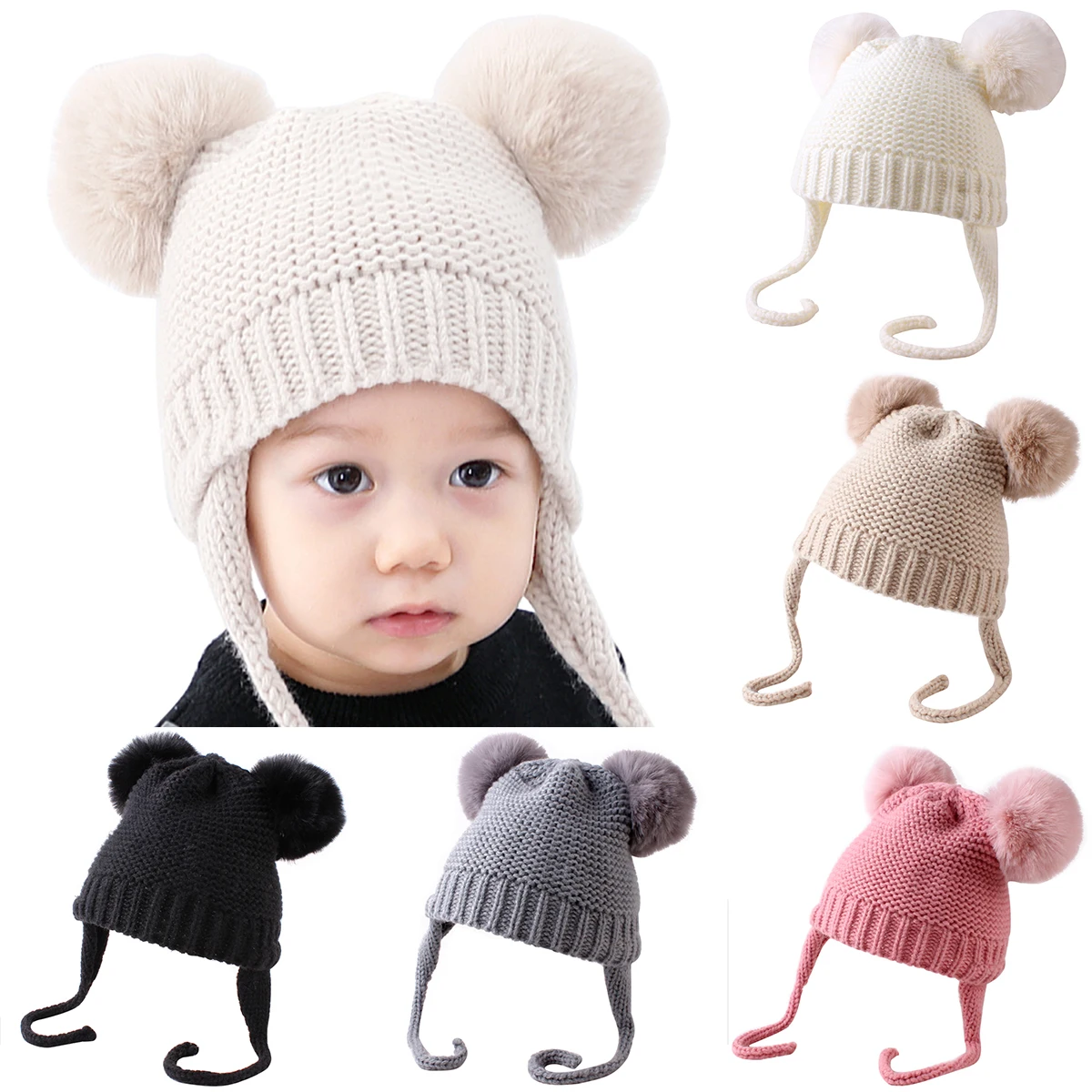 Милый Малыш Дети Девочка Мальчик ребёнок младенец зимняя теплая вязаная шапка шапочка белый черный серый розовый бежевый
