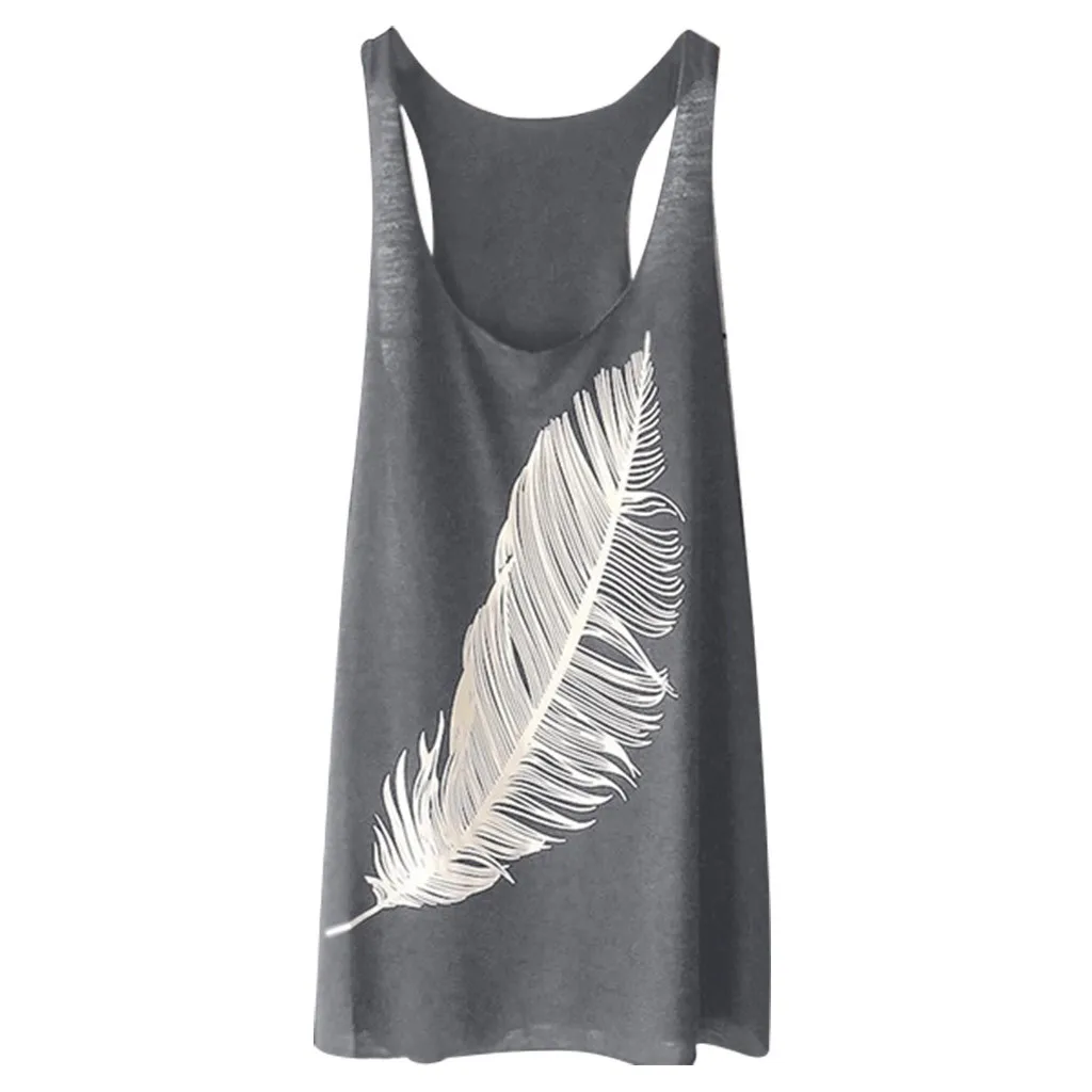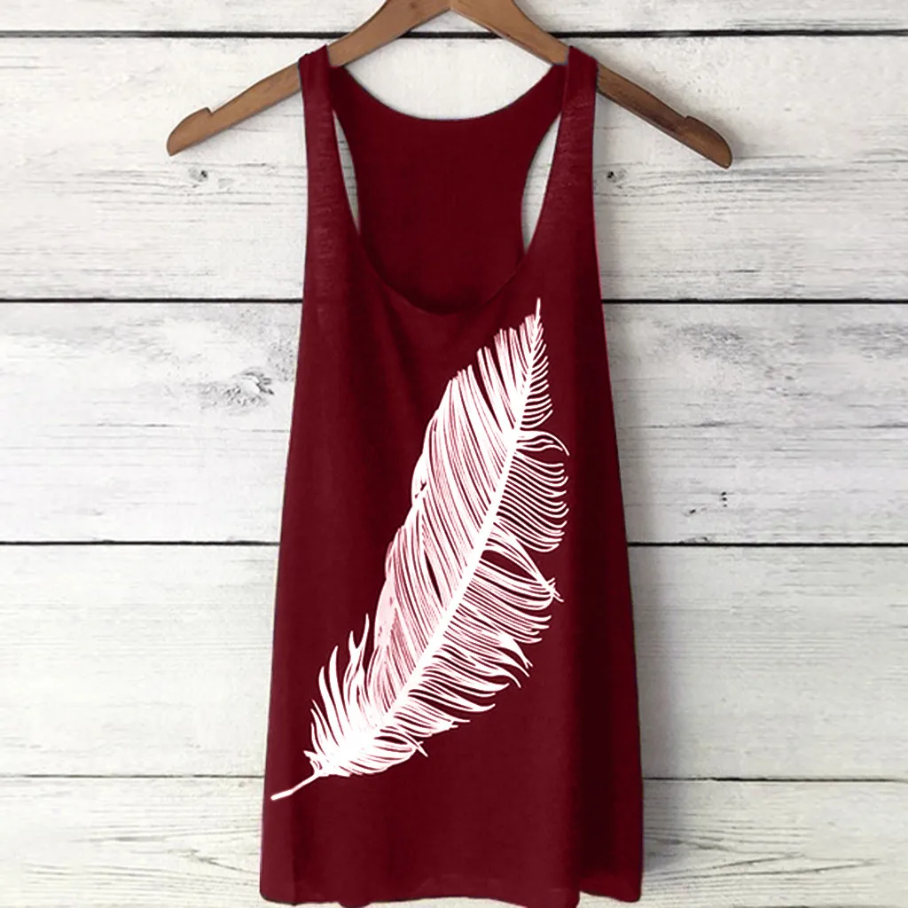 Женская майка с принтом перьев, топ с вырезом лодочкой, жилет Летний без рукавов, топ, жилет Chaleco De La Mujer, Повседневная Свободная рубашка
