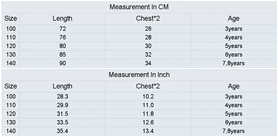 Размеры100 (3 T) 110 (4 T) 120 (5 T) 130 (6 T) 140 (От 7 до 8 лет)