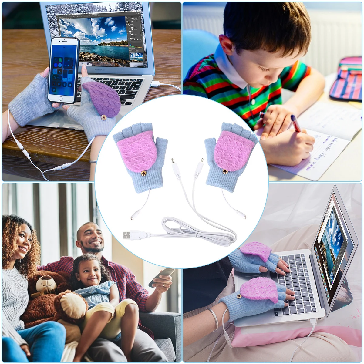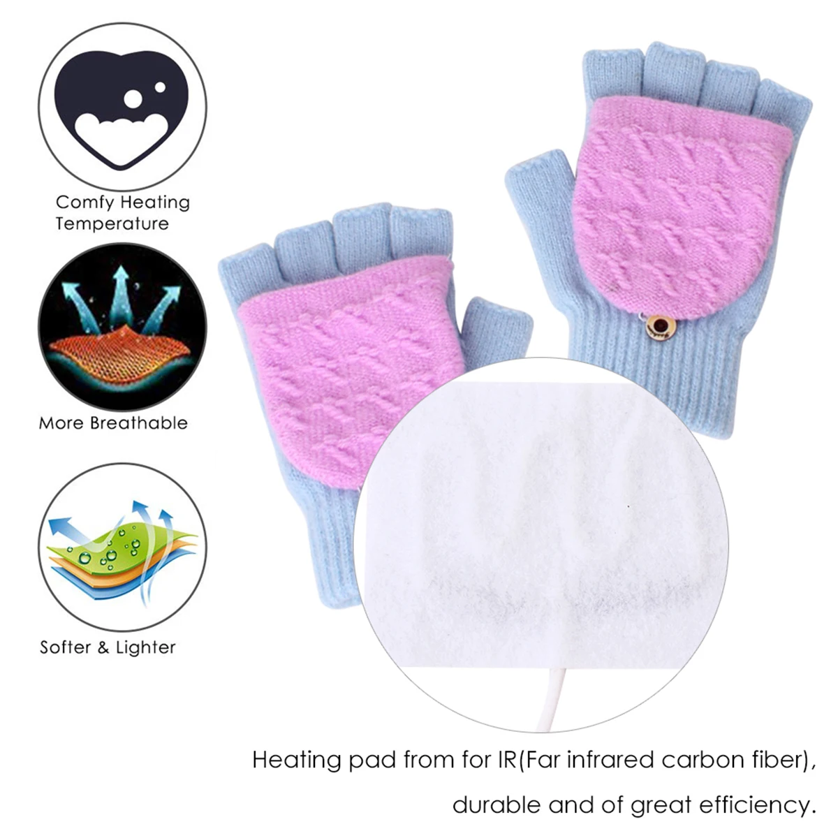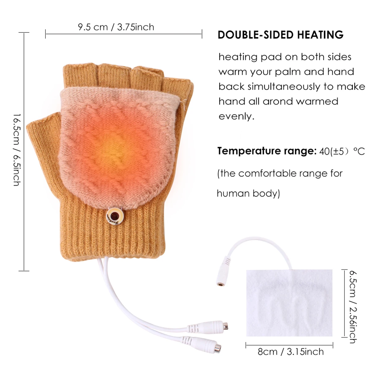 [Перчатки с подогревом USB согревают руки в холодные дни]: с односторонней грелкой на спине, эти перчатки всегда сохраняют ваши руки в тепле, не влияет на движение рук, когда вы работаете или учитесь перед компьютером. Попрощайтесь с холодной зимой!