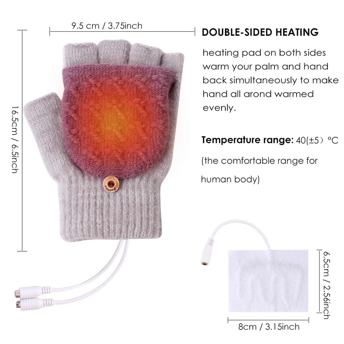 [Безопасный источник питания USB 5 В]: питание от USB 5 В, безопасная конструкция с низким энергопотреблением и очень простая в использовании. Просто подключите его к usb-порту ПК, блоку питания или другим источнику питания 5 В. Температура нагрева составляет около 40(± 5)°C, держит руки в тепле, но не жарко.