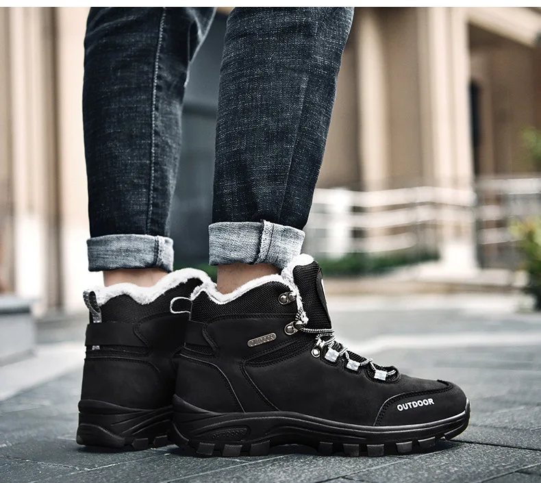Мужские ботинки из натуральной кожи; Зимние ботинки на меху; Мужская теплая Повседневная обувь для работы; Ботильоны на резиновой подошве в стиле милитари; Обувь для пеших прогулок; Европейские размеры 39-46; Цвет черный, коричневый