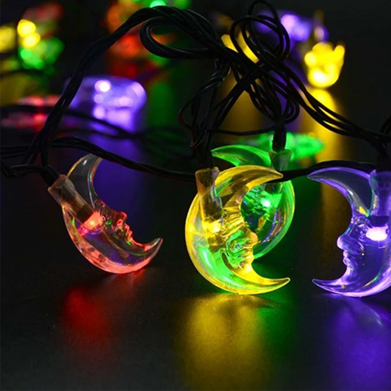 Название продукта: LED20 голова Луна Форма световая струна Количество ламп: 20 светодиодов Цвет: цвет света теплый белый свет Уровень защиты: IP65 Световой поток: 600 (лм) Цветовая температура: 6000 (к) Продолжительность жизни: 6000 (ч) Входное напряжение: 4 (в) Материал корпуса: пластик Вес: 220 г Длина: около 3,5 м Упаковка: один opp мешок Описание: 20 Лун стиль фестиваль украшения Солнечный свет струны открытый Рождественская елка украшения струны