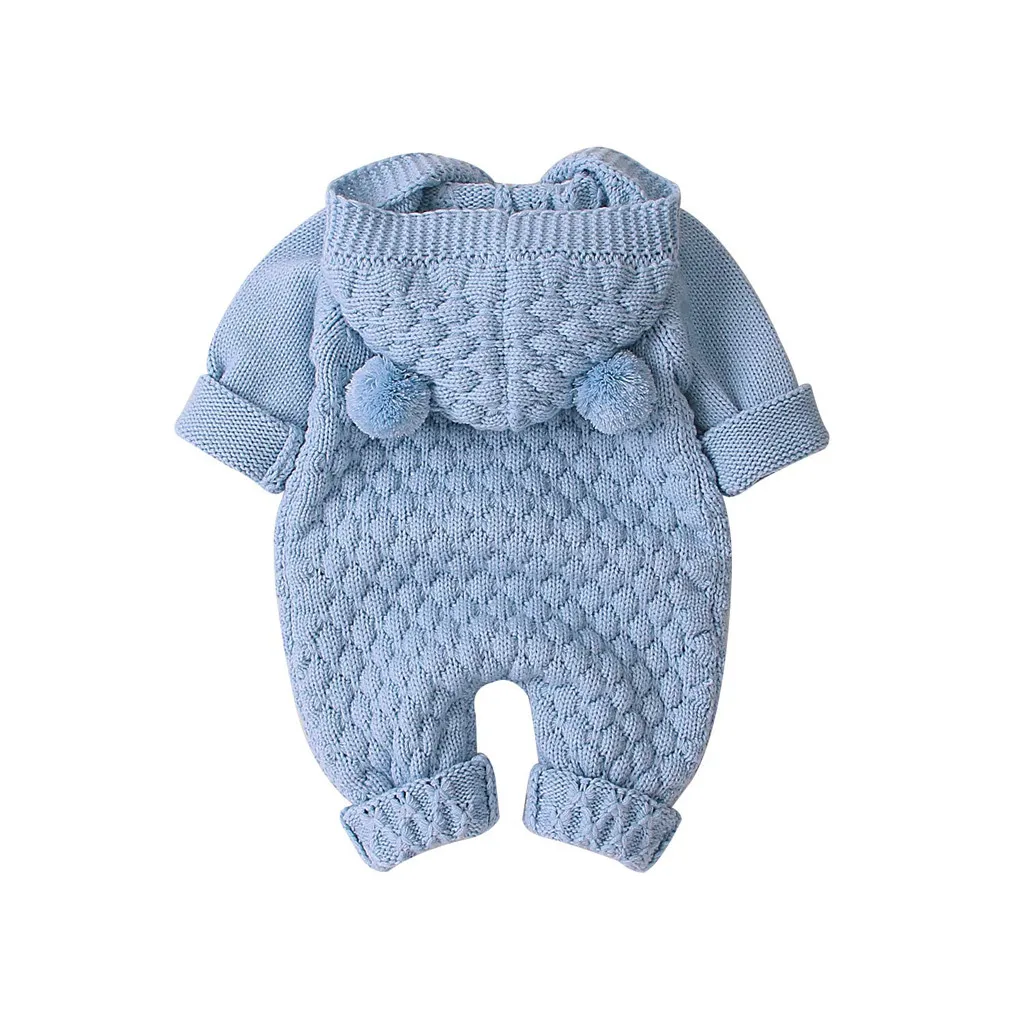 Зимнее теплое пальто для новорожденных девочек и мальчиков трикотажная верхняя одежда, комбинезон с капюшоном