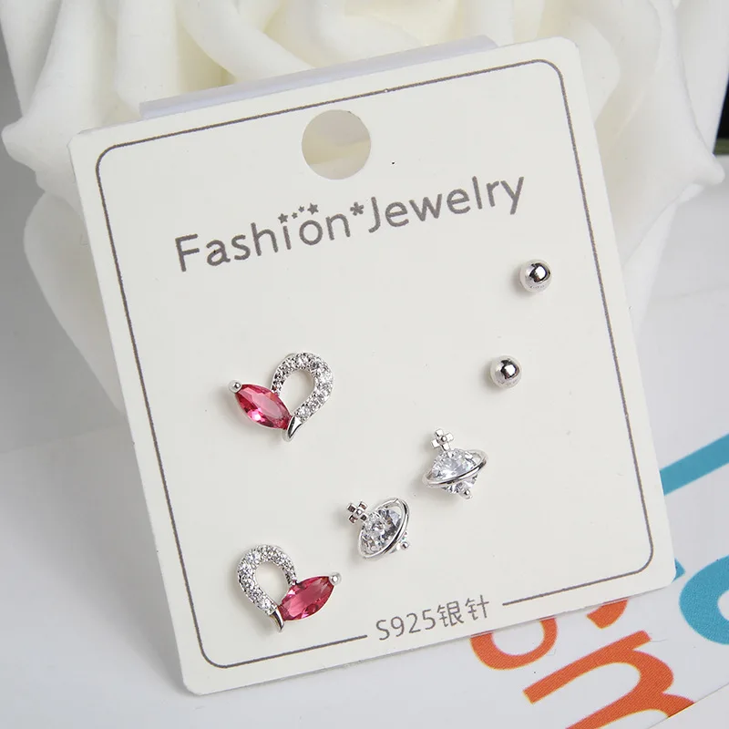 Новинка, 3 пары/набор, креативные серьги-гвоздики из стерлингового серебра 925 пробы с кубическим цирконием в форме сердца и бантом, комплект для женщин и девочек, ювелирные изделия Материал: серебристый фианит Размер: как показано Состояние: 100% новый бренд Повод: подарок на свадьбу, день рождения, День святого Валентина